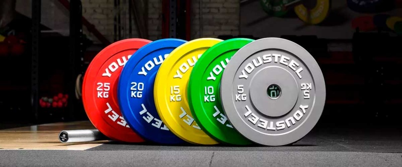 Производители спортивного инвентаря выпускают цветные диски с резиновым покрытием. Такой способ помогает спортсмену удобно регулировать штанги. Вес дисков в килограммах составляет: