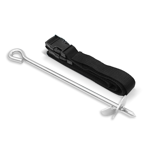 Фиксатор для крепления батута к земле. Комплект включает в себя 1 ремень и 1 стальной колышек. Предназначен для фиксации батутов до 4,87 метров (16ft) к земле. Особенно рекомендуется использовать в ветреную погоду. Колья легко "вкручиваются" в землю при помощи "ножа", расположенного у основания. Ремни подгоняются к батуту любой высоты. Не советуется использовать в шторм.