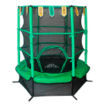 - Детский батут максимально безопасен для ребенка благодаря высоте защитной сетки и мягкому материалу, которым обшиты стойки.