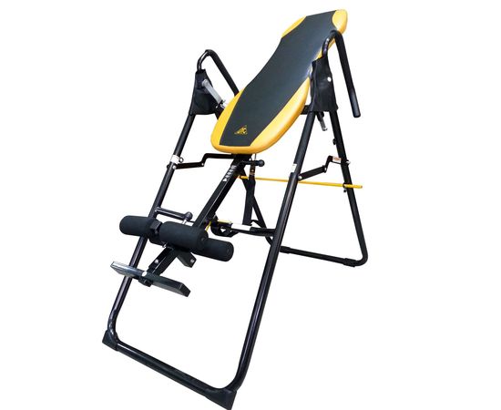 На данной модели инверсионного стола предусмотрен выбор режима инверсии (с помощью стержня): легкий (угол до 22 гр), средний (угол от 22 до 55 гр), профессиональный (от 55 гр). Размер в рабочем положении 144 х 72 х 133 см, в сложенном - 91 х 72 х 172 см.