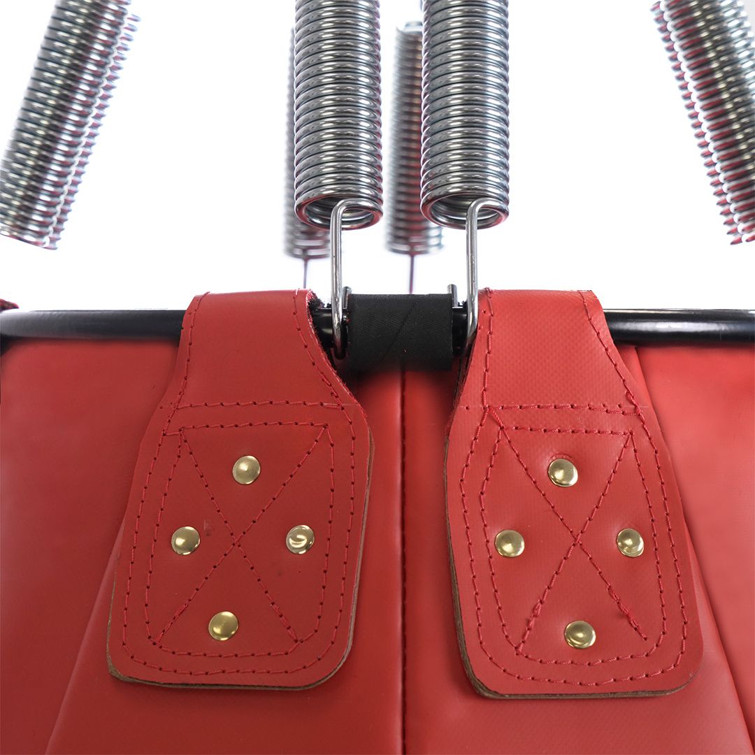 - Груша снабжена уникальной подвесной пружинной системой (вхолит в комплект). Она уменьшает амплитуду раскачивания снаряда за счёт пружин, которые «гасят» инерцию удара. Подвесная система бесшумна, в отличии от цепей (особенно это важно в условиях спортклуба и в доме). Исключает металлический грохот.