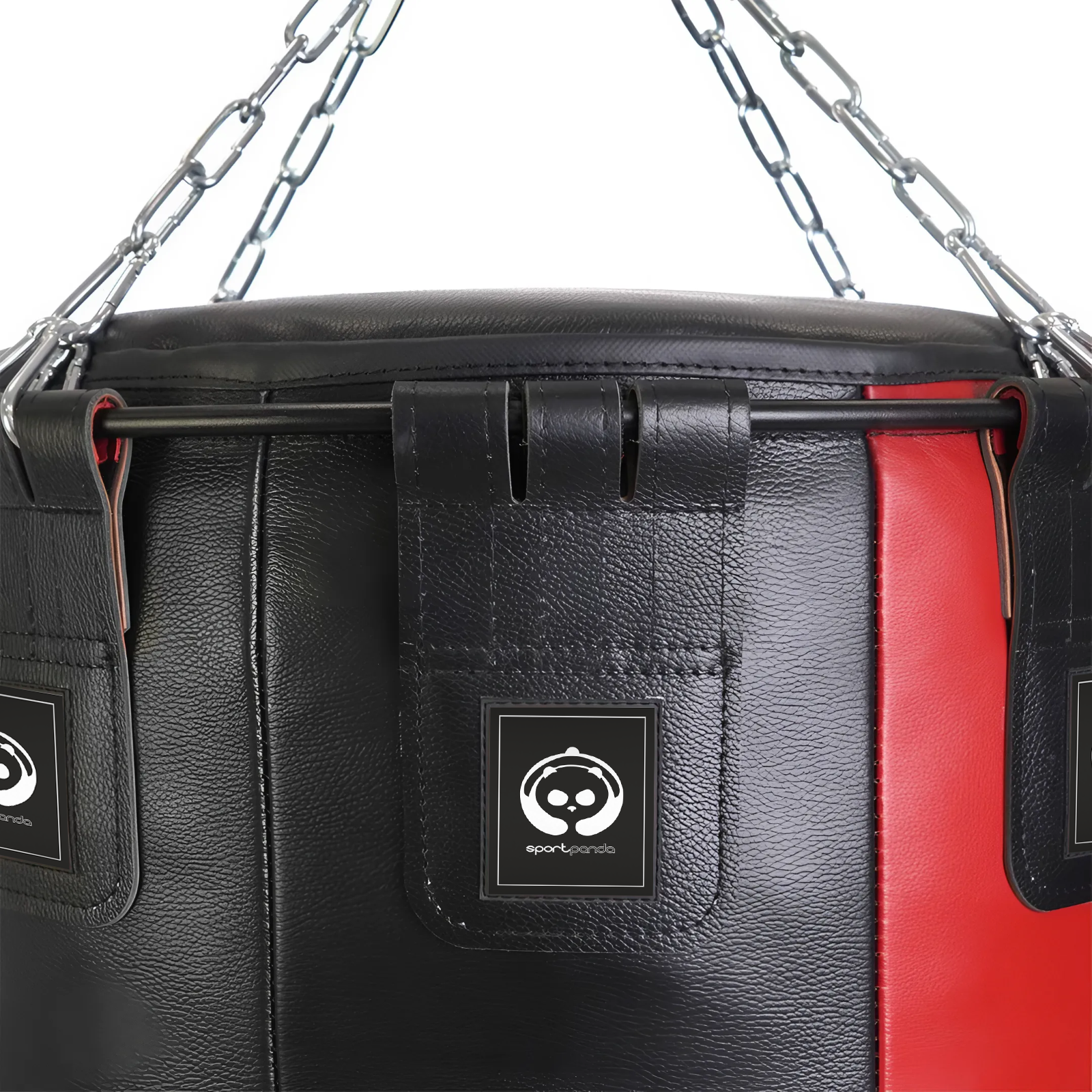 - Материал профессиональной боксёрской груши — натуральная кожа крупного рогатого скота. Толщина обшивки — 2–2,2 миллиметра — обеспечивает непревзойдённую прочность даже после многих месяцев тренировок.