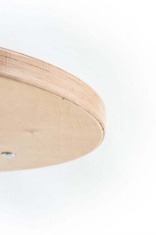 - Сам диск диаметром 600 мм изготовлен из клееной фанеры толщиной 40 мм – при такой толщине снижается вибрация и контролировать отскок груши становится лучше. Любителям работать на высоких скоростях это несомненно понравится. Вся поверхность диска и граней тщательно отшлифована и покрыта лаком.