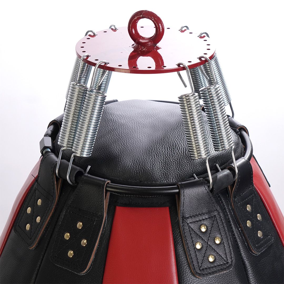 - Для подвешивания снаряда используется пружинная система «Амортизатор». Уменьшает раскачивания груши за счёт лучшего поглощения энергии удара, сохраняет естественные колебания вниз-вверх. Подвес из пружин не гремит и не лязгает, подходит для применения в малых спортзалах и домашних условиях.