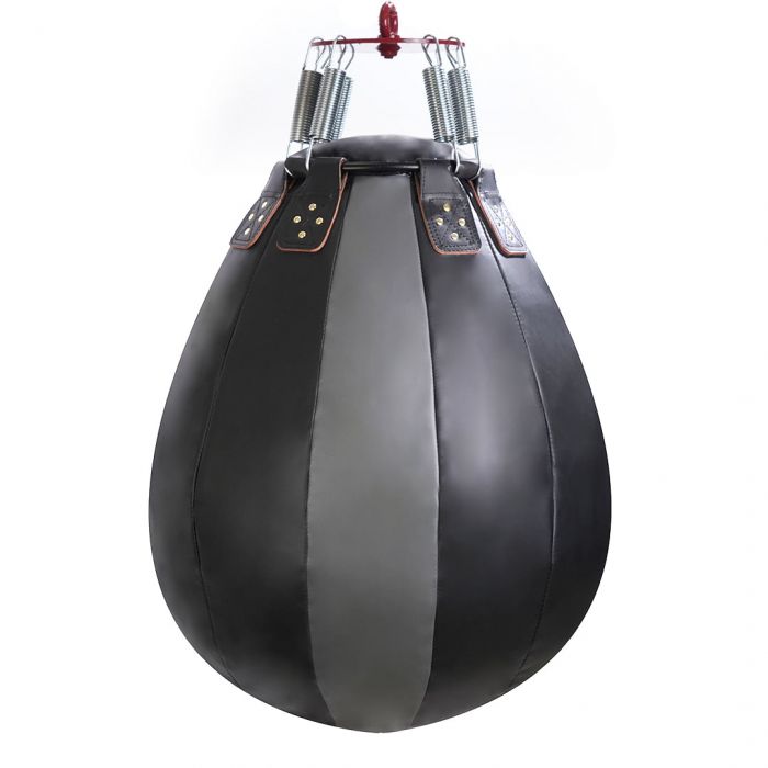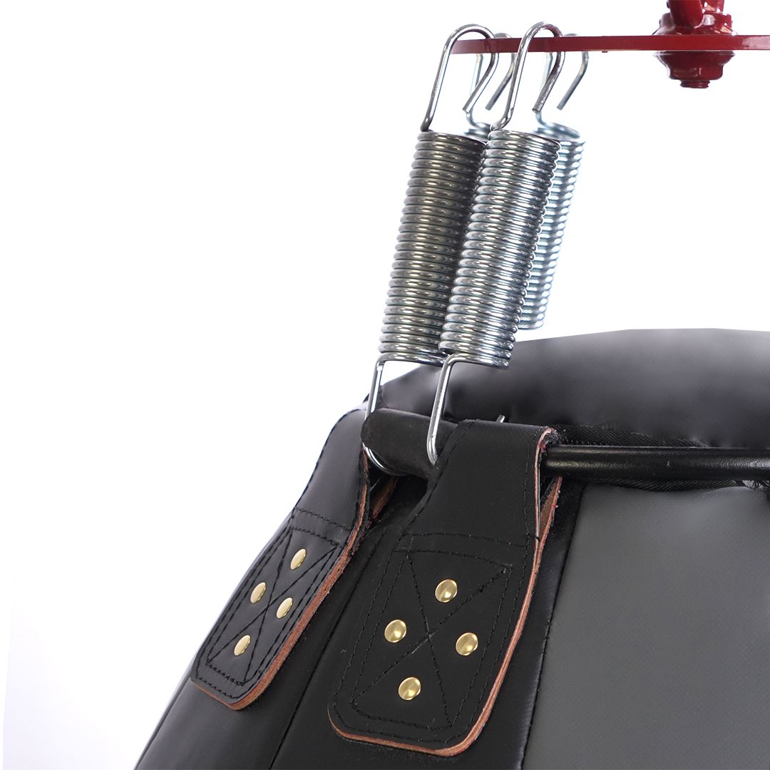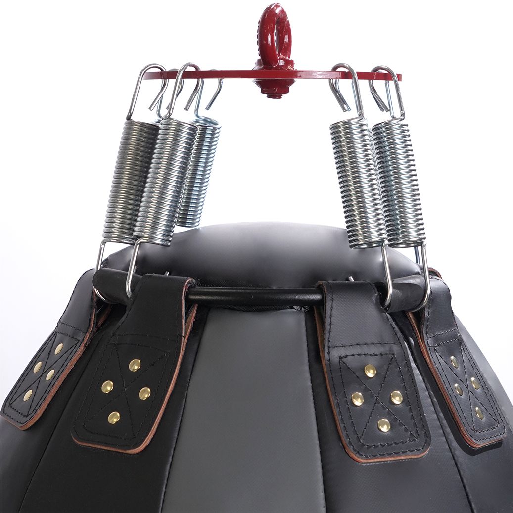 - Для подвешивания снаряда используется пружинная система «Амортизатор». Уменьшает раскачивания груши за счёт лучшего поглощения энергии удара, сохраняет естественные колебания вниз-вверх. Подвес из пружин не гремит и не лязгает, подходит для применения в малых спортзалах и домашних условиях.