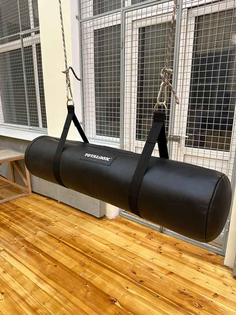 Боксерский мешок горизонтальный. Горизонтальное исполнение делает его практически незаменимым для тренировки любых ударов руками и ногами, а потому этот тренажер так приглянулся представителям всех видов спортивных единоборств.