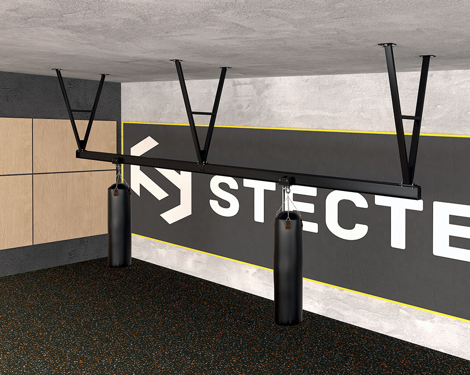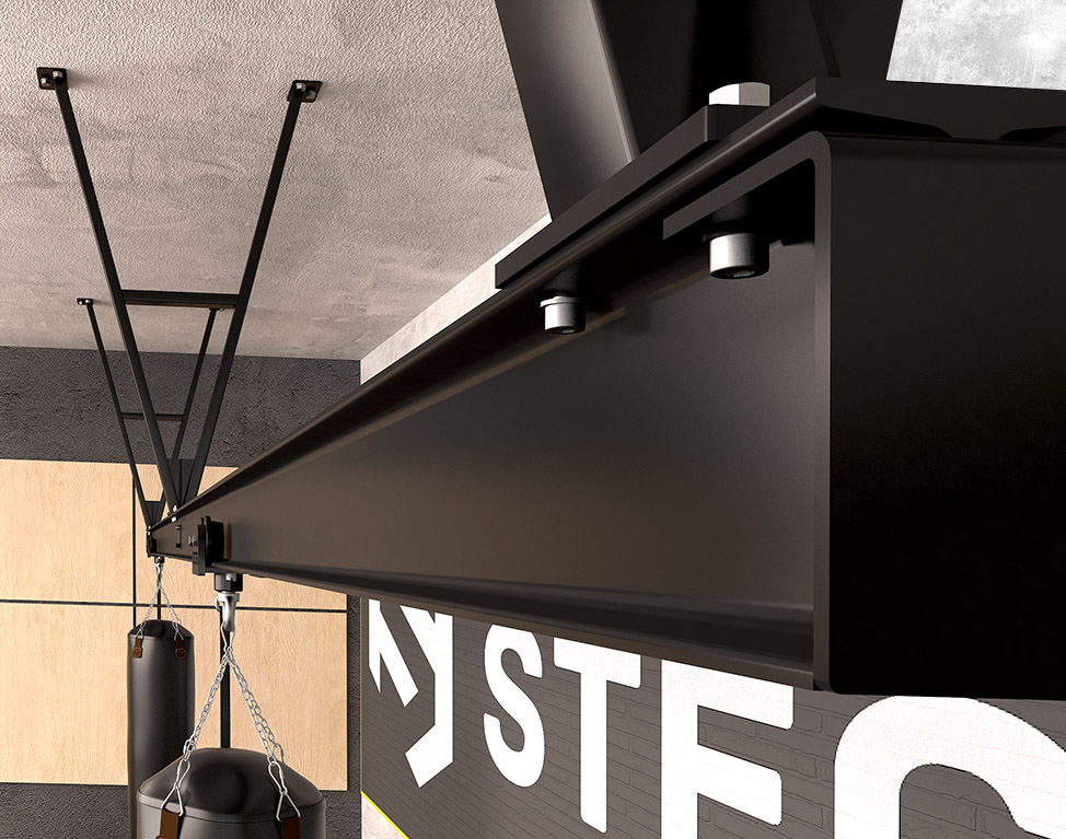В любом спортивном зале рано или поздно встает вопрос со свободным пространством. Его становится очень мало. Чтобы помочь в решении данного вопроса мы предлагаем Вам готовый комплект рельсовой транспортировочной системы, для перемещения боксерских мешков внутри зала. Он позволяет за 2 минуты перед тренировкой установить боксерские мешки на "рабочие места", а после завершения тренировки так же очень быстро укатить их и освободить место для других занятий.
