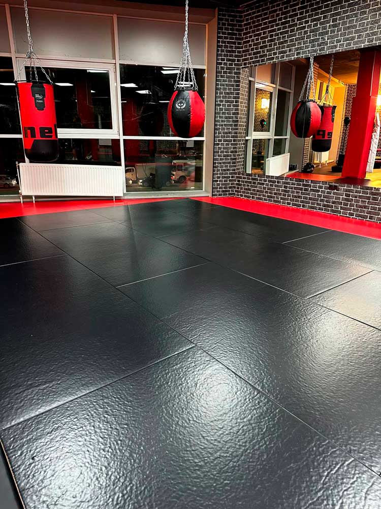 - Открытое дно — нижняя поверхность наполнителя ничем не закрыта. Это самый бюджетный вариант исполнения нижней поверхности. Применяется на матах, где татами по периметру ограничиваются либо стенами, либо специальными упорами, не позволяющими матам смещаться. Возможен так же вариант закрепления всех или периферийных матов с помощью двухстороннего скотча. Так же условием использования таких матов является сухое помещение.