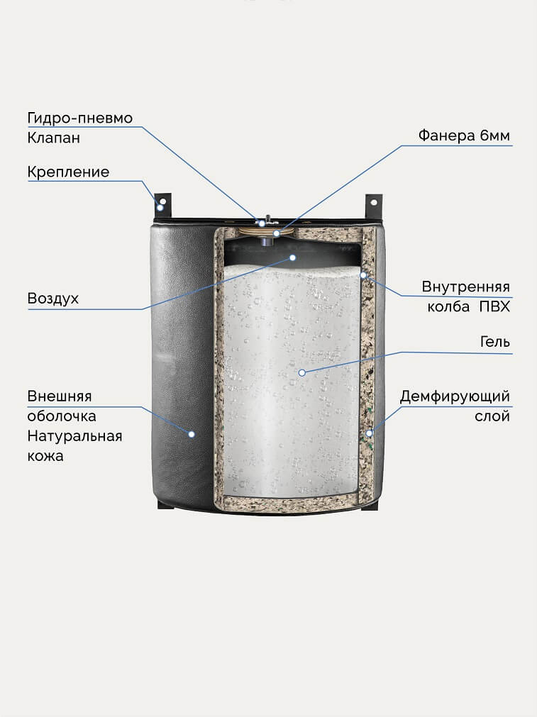 - Рабочее тело: композитный состав на гелевой основе/воздух, клапан для регулирования жесткости ширина - 50 см.