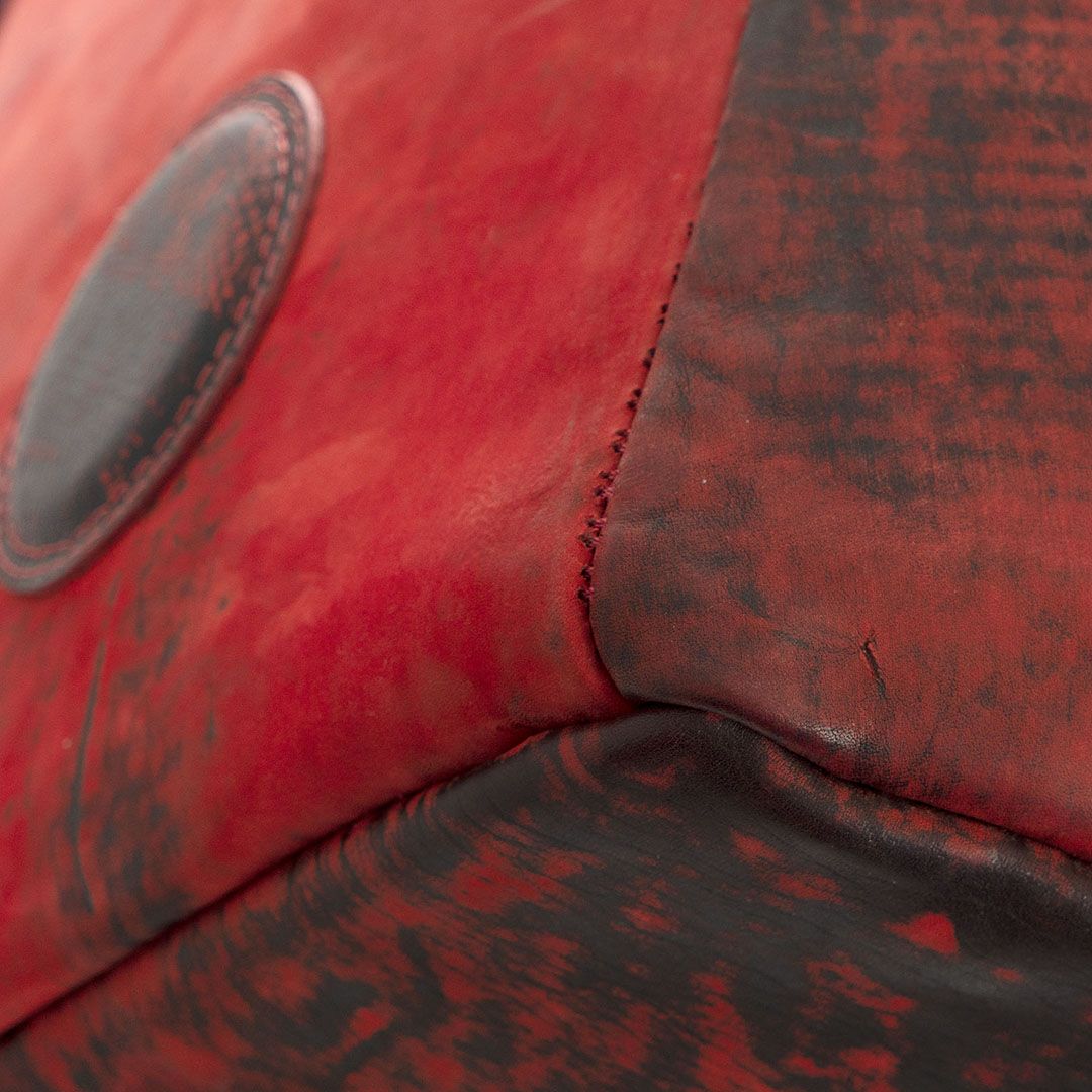 - Обшивка выполнена из натуральной кожи крупного рогатого скота, толщина слоя — 2 миллиметра. Кожаные элементы дублированы износостойкой ПВХ-тканью 630 г/м2, соединёнными методом пайки.