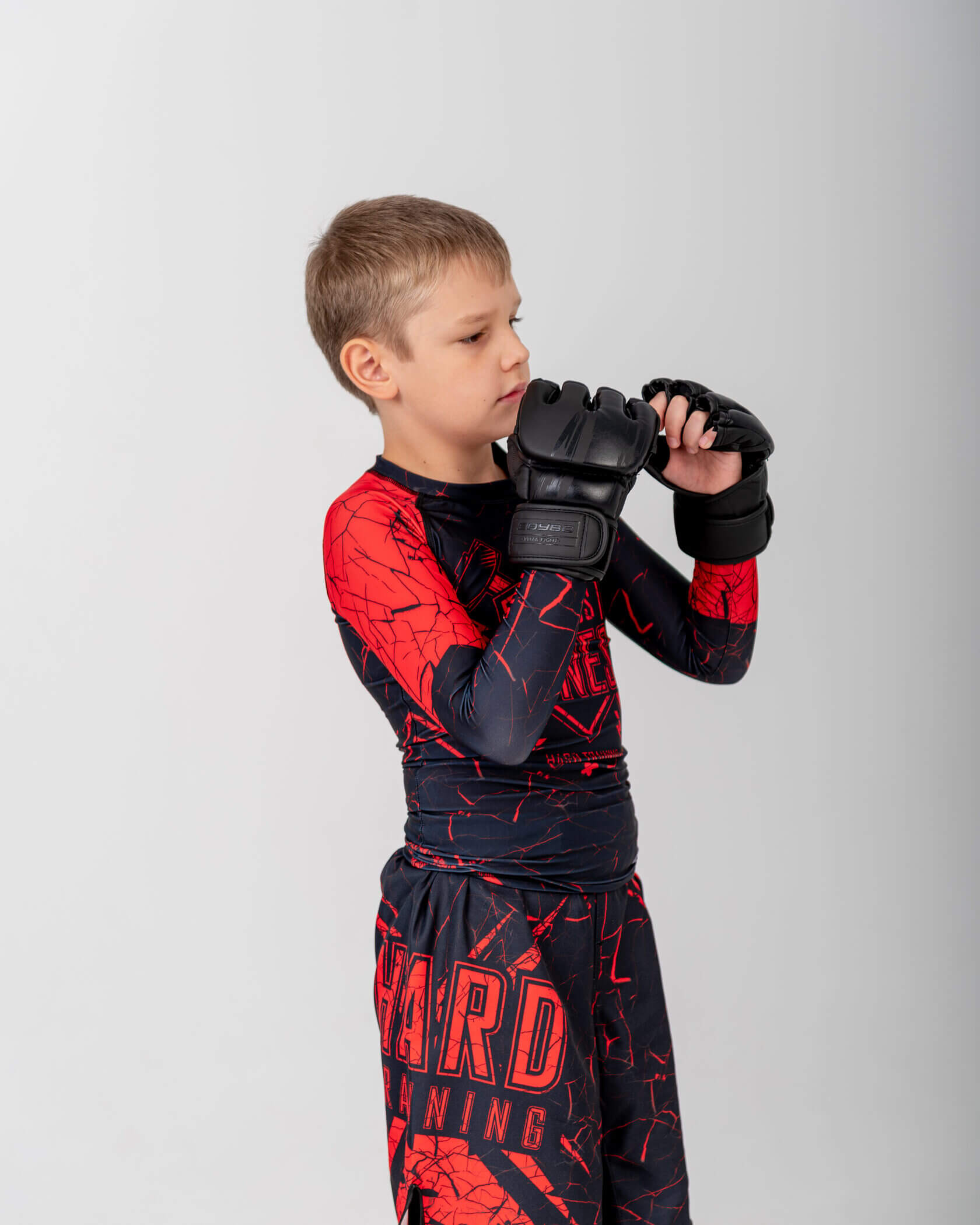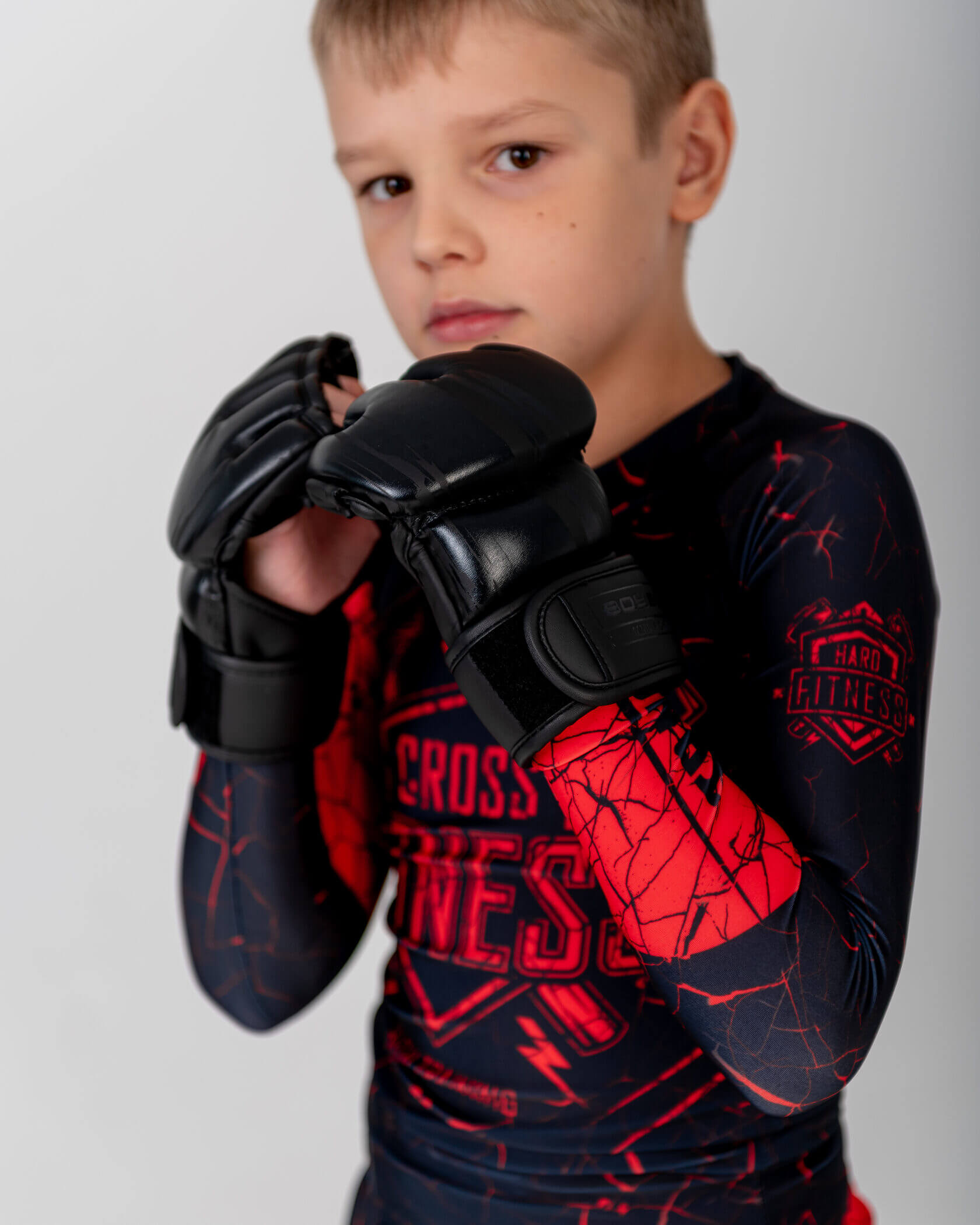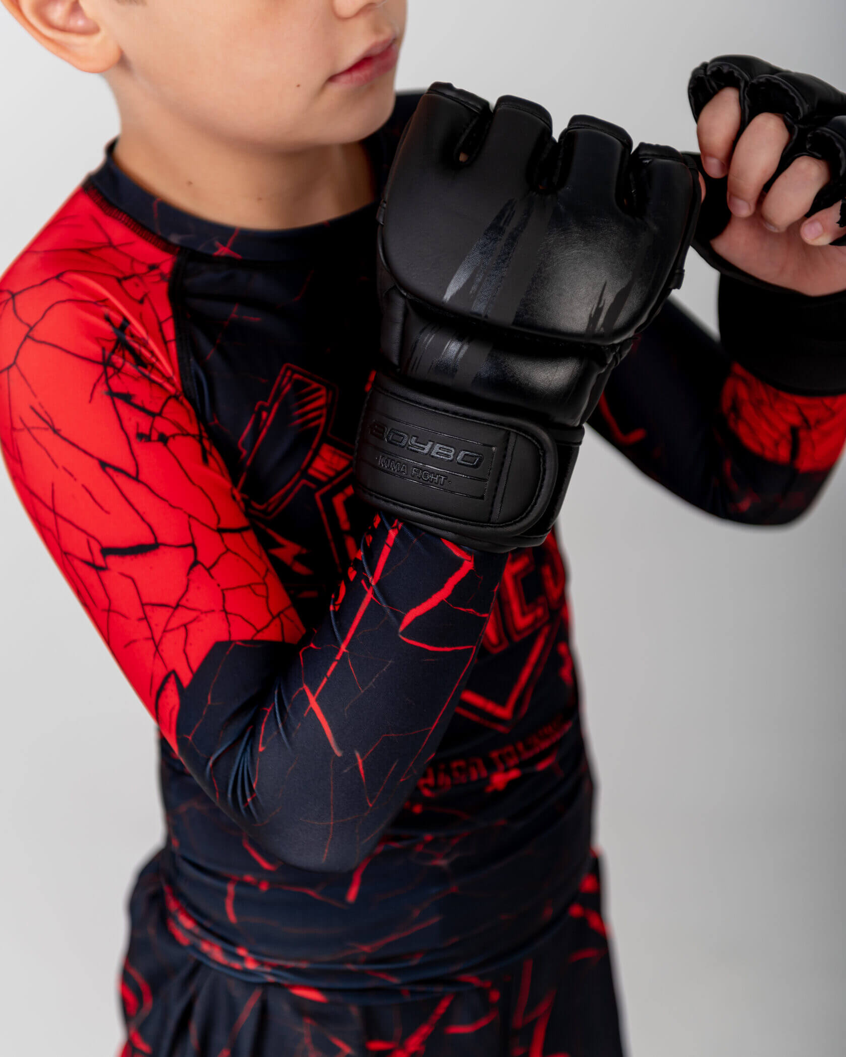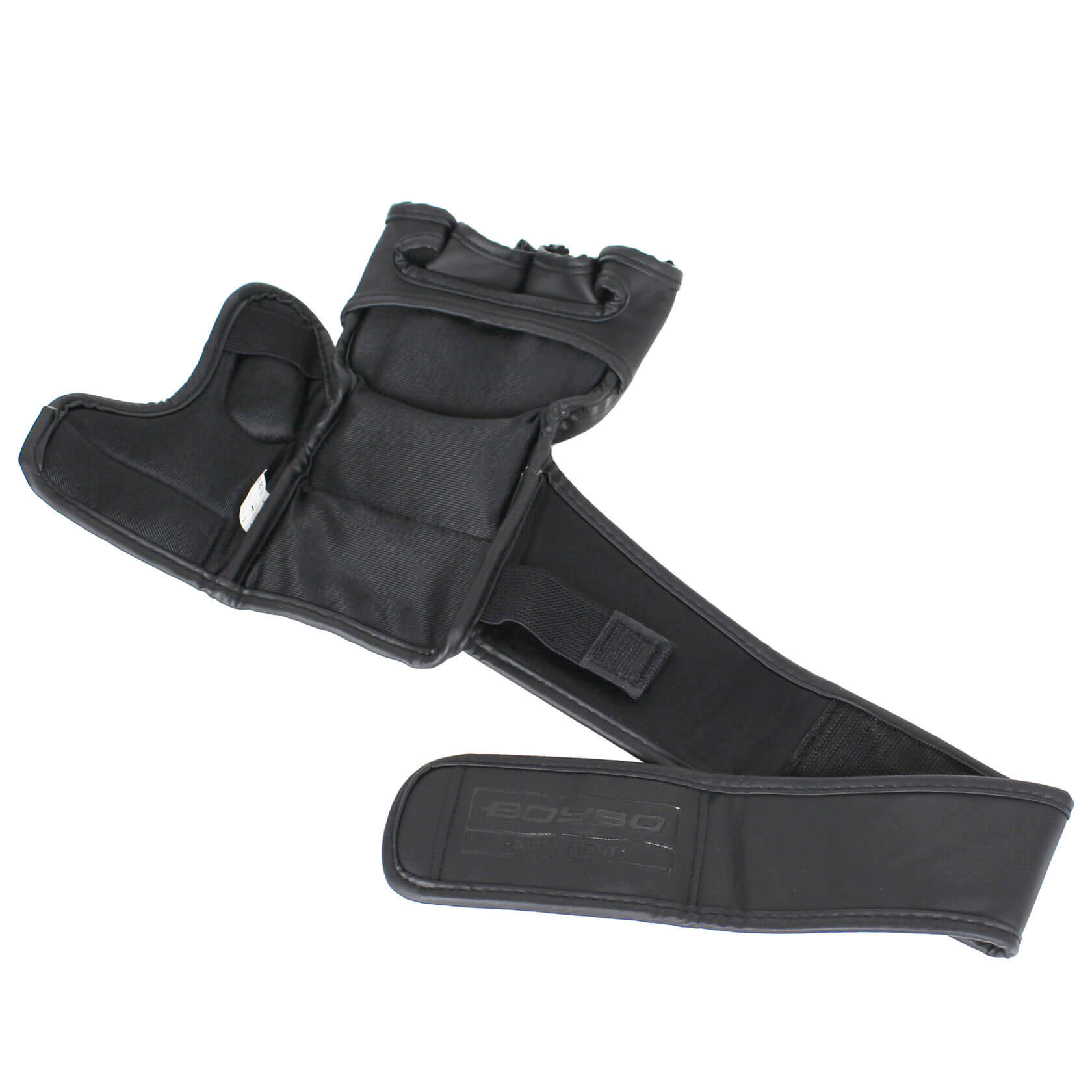 - Перчатки выполнены из долговечной эко-кожи Flexy, обеспечивают высокую степень защиты кисти при ударах, открытые фаланги позволяют бороться, не стесняя движения, при этом имеется дополнительная защита большого пальца.
