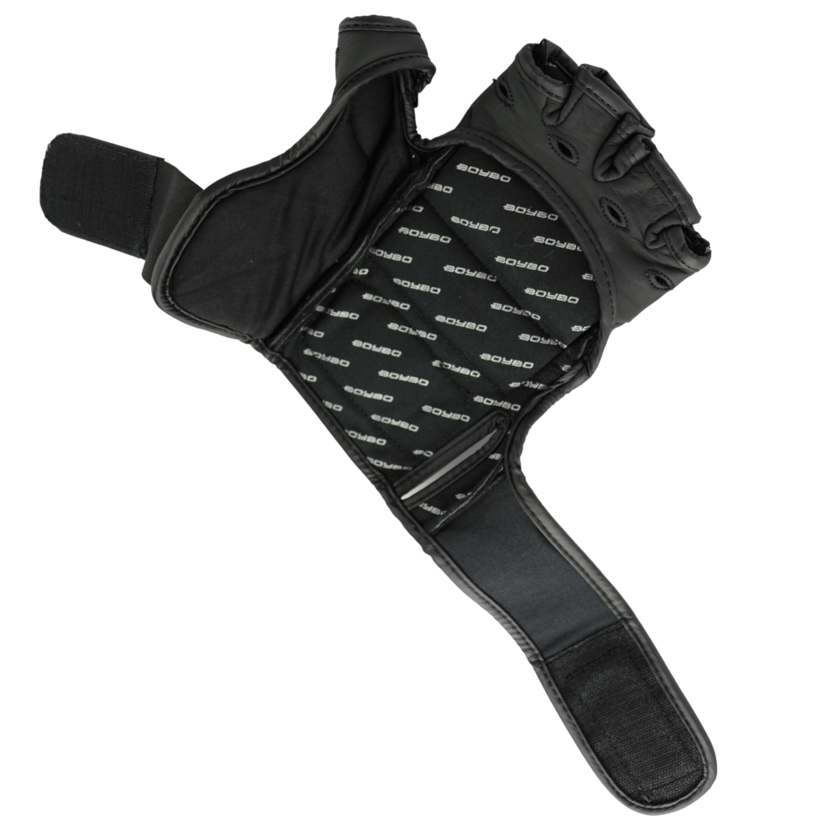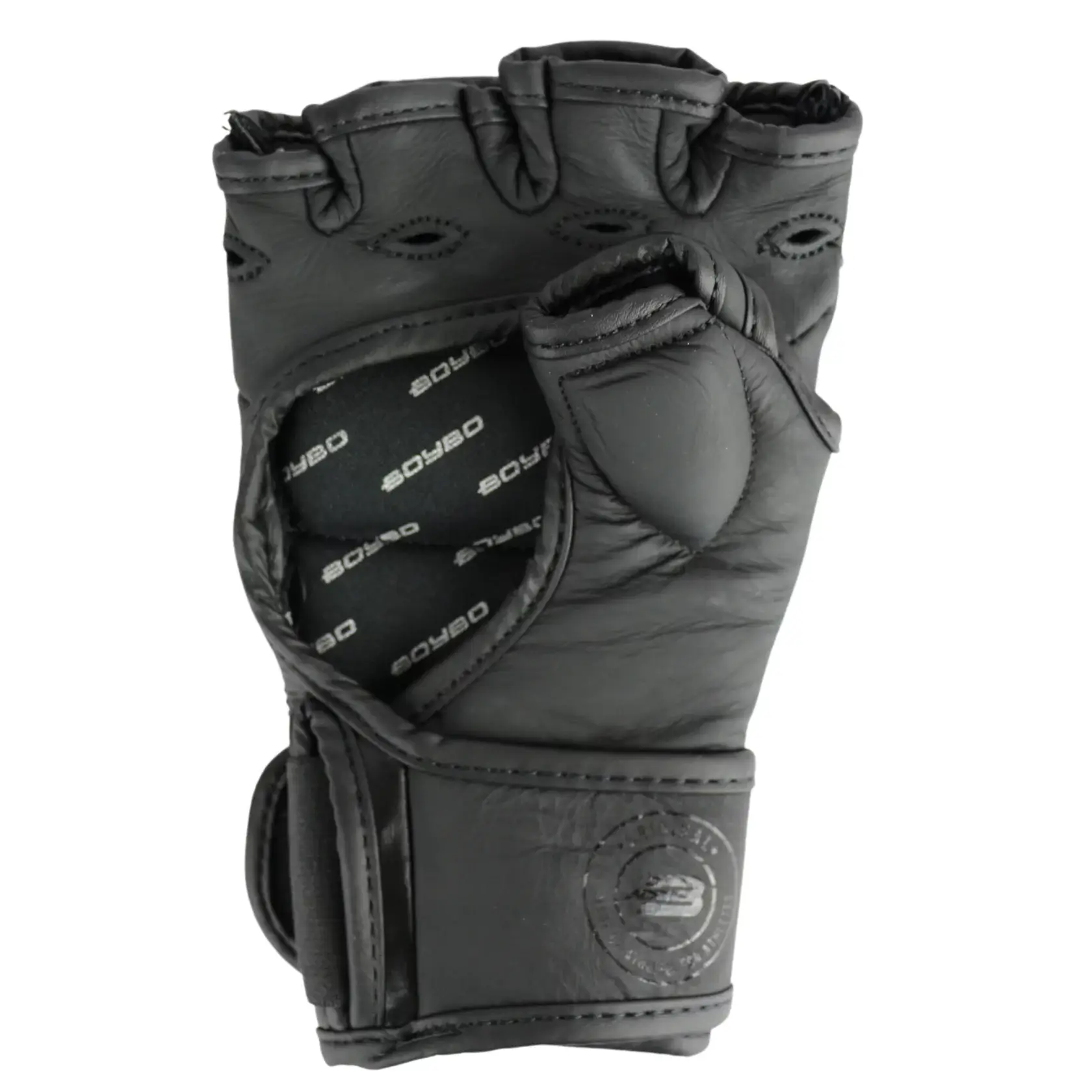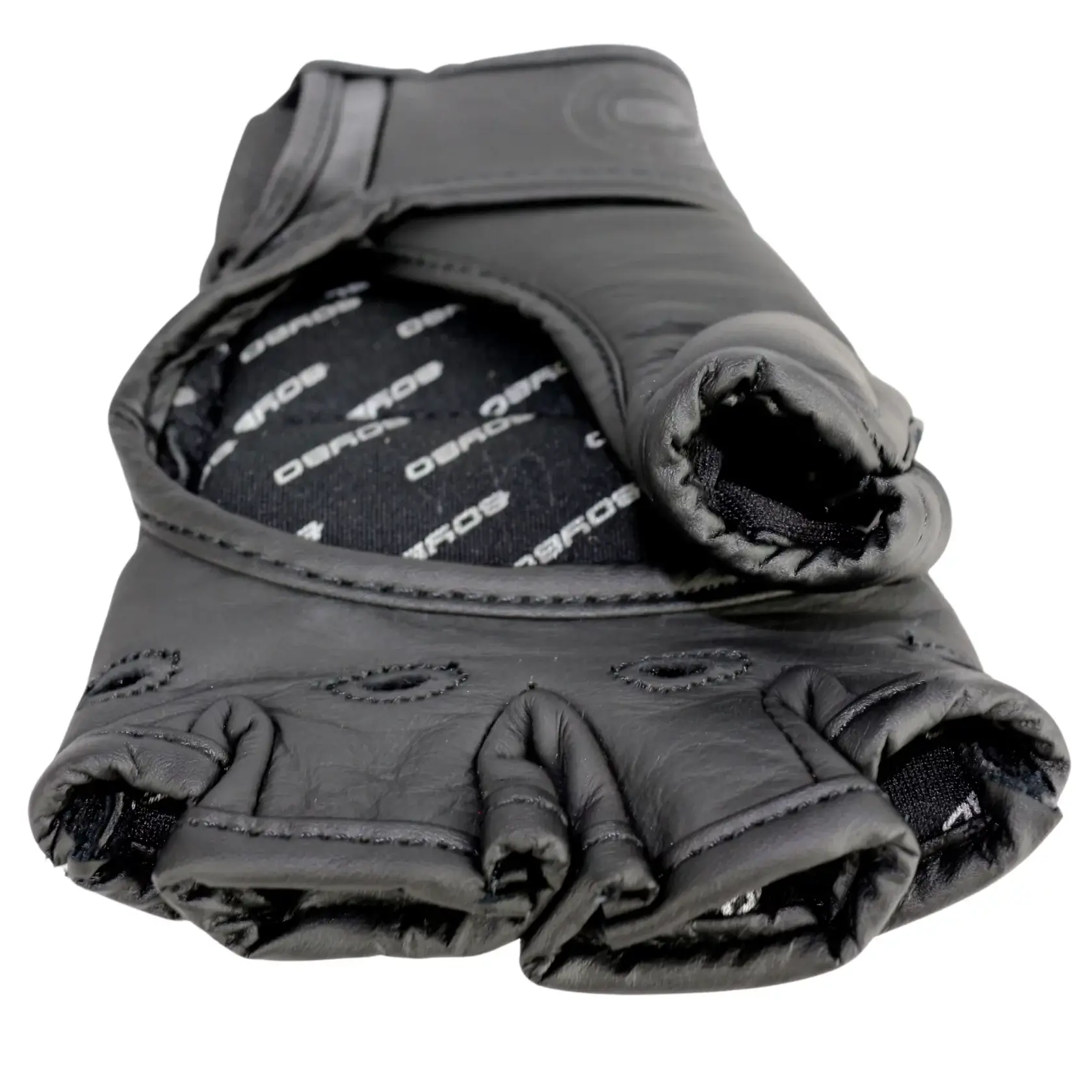 - Перчатки выполнены из натуральной кожи премиум-класса, обеспечивают высокую степень защиты кисти при ударах, открытые фаланги позволяют бороться, не стесняя движения, при этом имеется дополнительная шарнирная защита большого пальца для легкости движения и расширенная защита для пальцев.