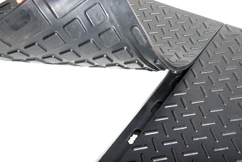 Благодаря специальному составу плиты обладают высоким сопротивлением к ультрафиолетовому излучению, озоновому и тепловому старению. Плиты напольного резинового покрытия изготовлены из экологически безопасных материалов. Благодаря удобной защёлке монтаж может производиться самостоятельно, образуя сплошной настил. Не требуется дополнительных материалов (инструментов, клея и т. д.).