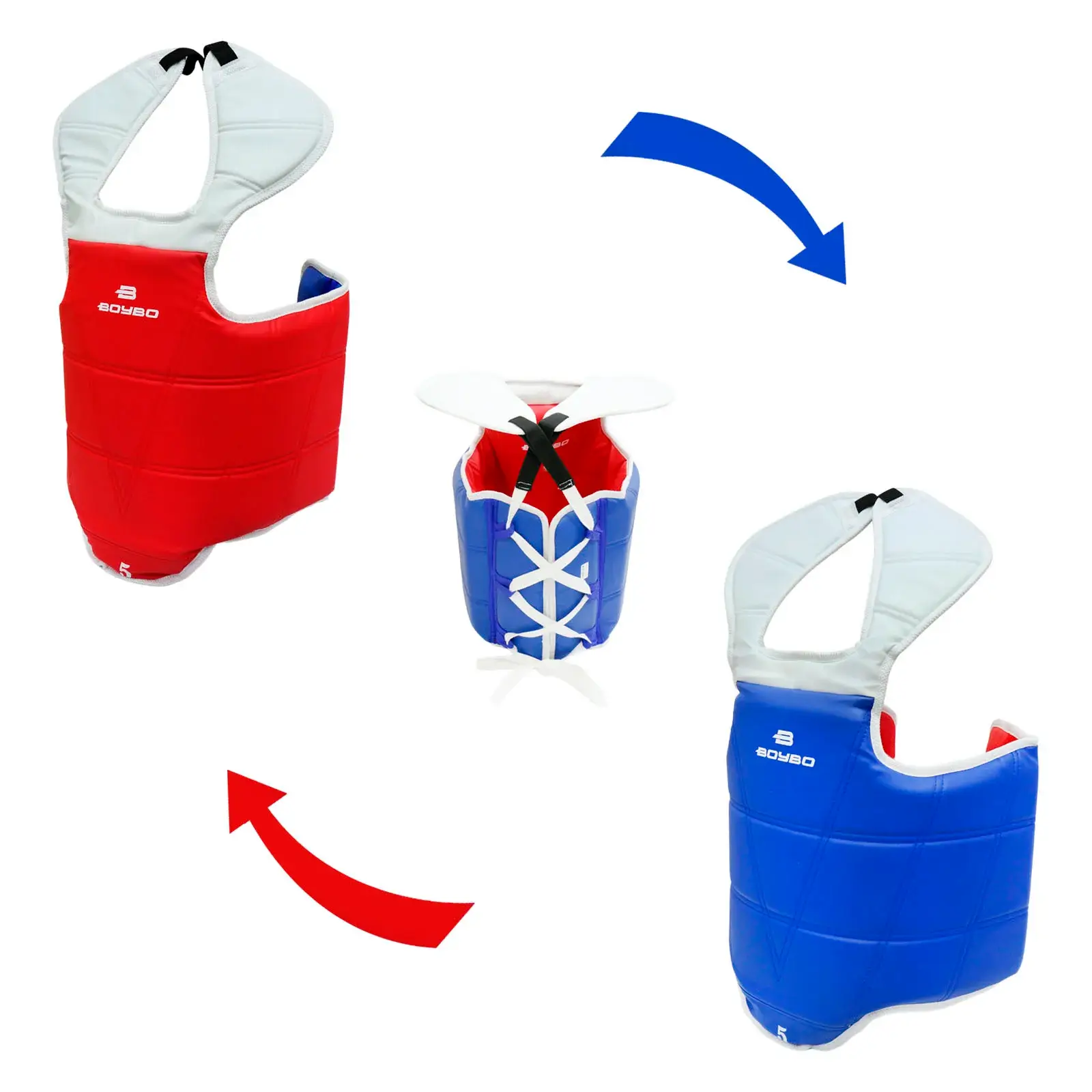 - Двухсторонняя защита корпуса для тхэквондо и других единоборств с защитой плеч.