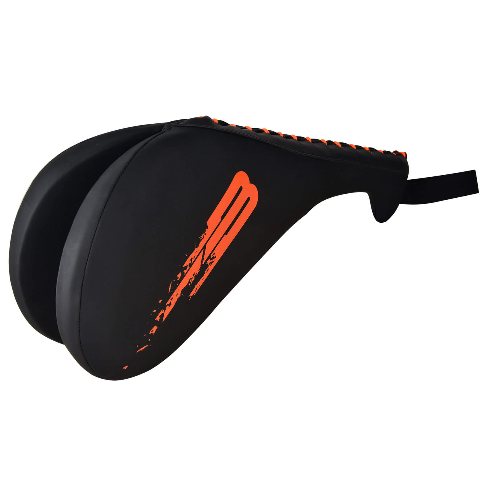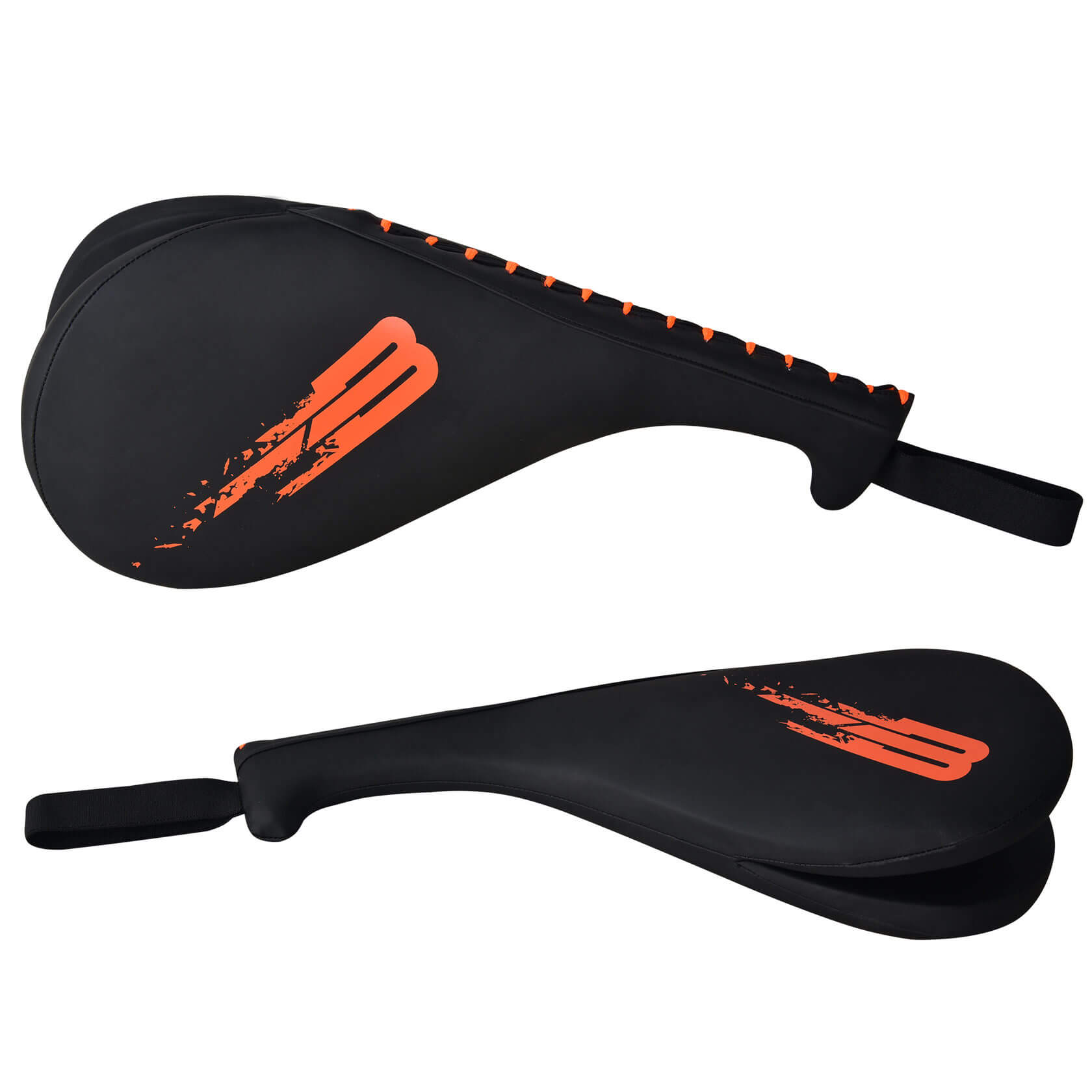 Лапа-ракетка тхэквондо BoyBo двойная Fire– предназначена для отработки четких и хлесткий ударов ногами. За счет небольшого размера ракетка вырабатывает в спортсменах точность удара и координацию. Эффект хлопка позволяет оценивать “качество” удара.