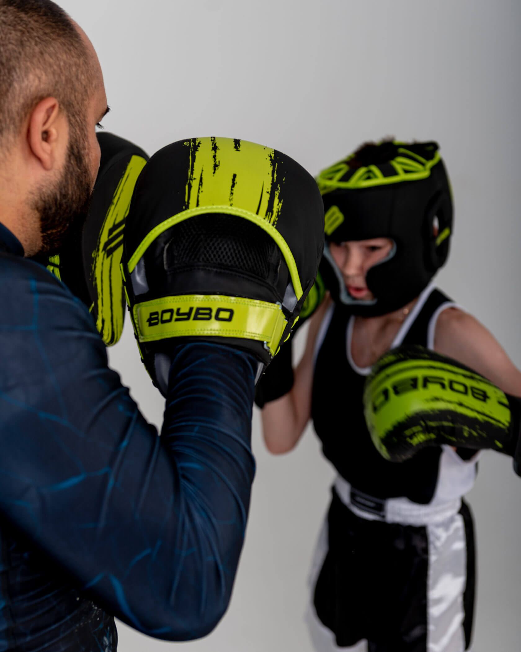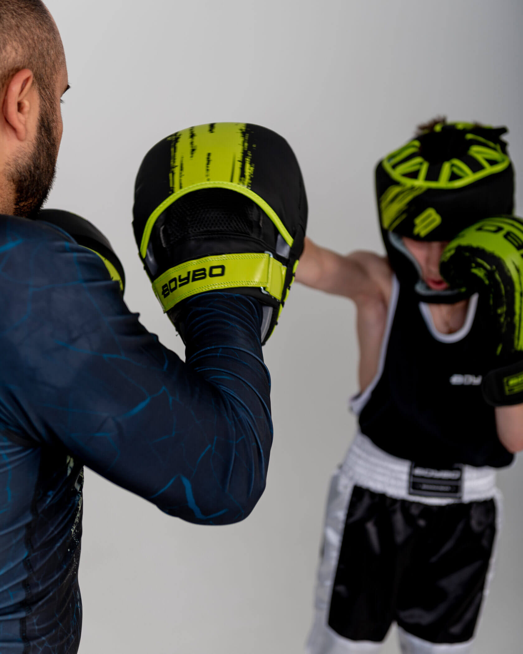 Тренировочные лапы BoyBo Stain выполнены из искусственной кожи (Flexy) - это позволяет снизить стоимость снарядов без потери качества тренировок.