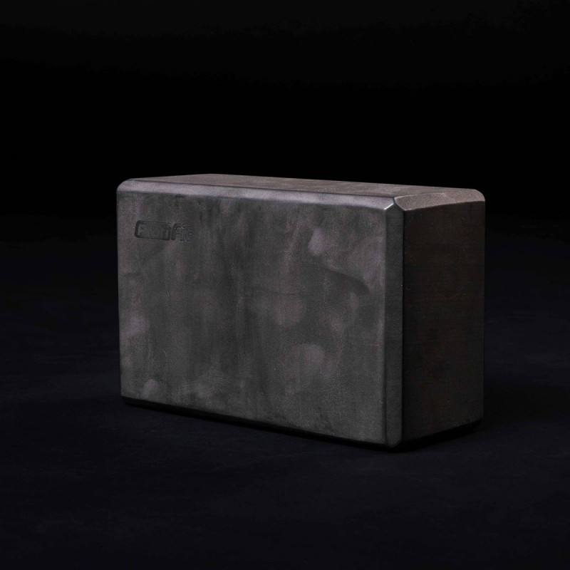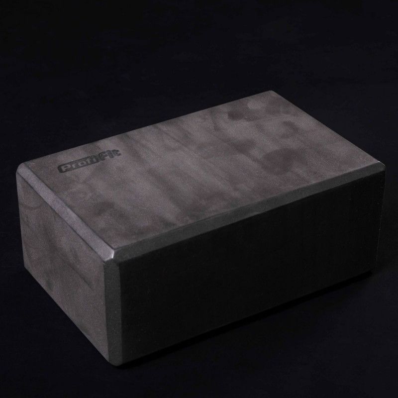 Опорный блок для занятий йогой, прямоугольной формы, черного цвета, сплошной конструкции без отверстий и полостей. Нетоксичен, не имеет неприятного запаха. Поверхность не скользящая, отлично держащая упор. Могут использоваться все три стороны блока, углы которого скошены для удобства хвата. Предназначен для стабилизации тела человека во время выполнения им сложных асан, где требуется особая гибкость.