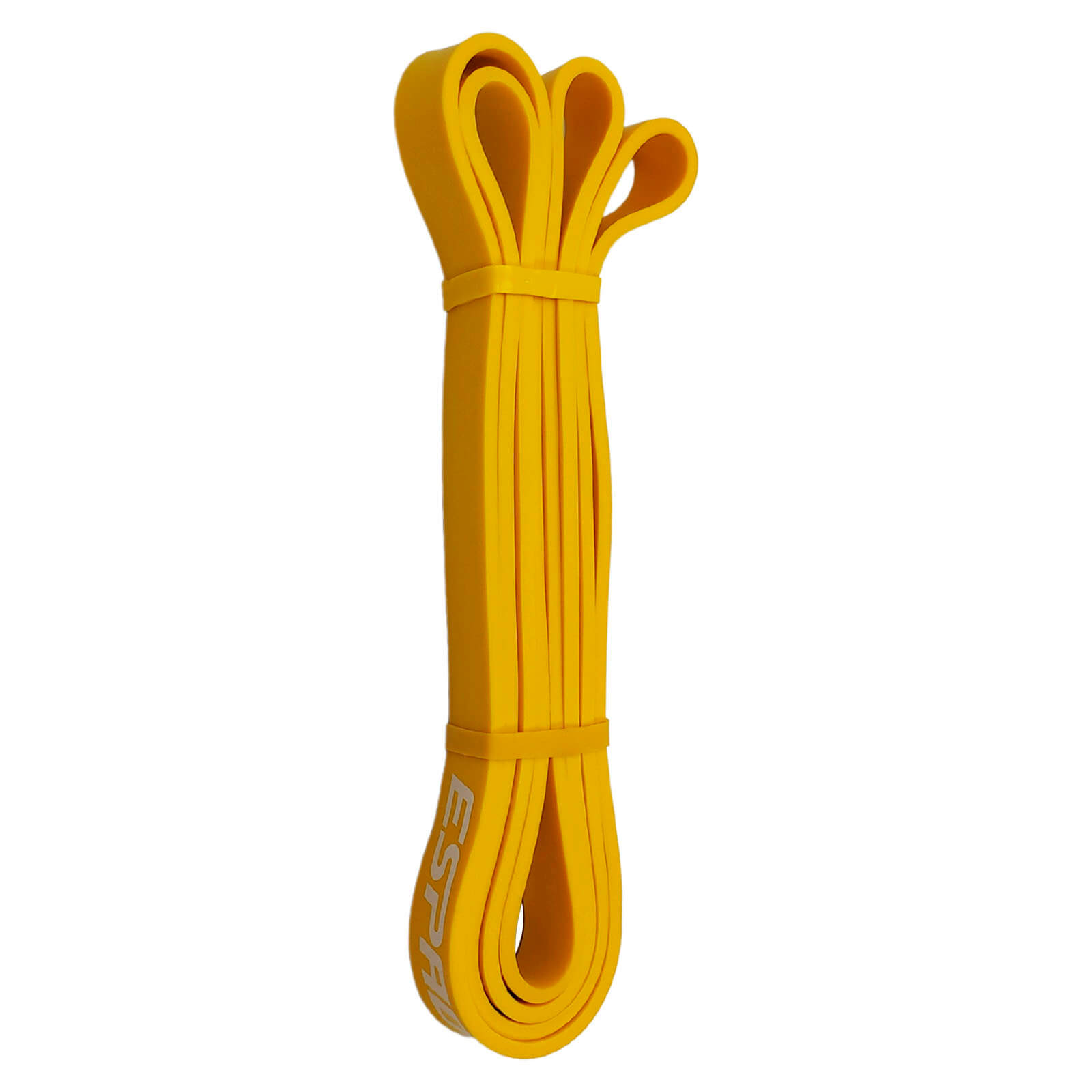 Желтая резиновая петля отлично подходит для первых базовых движений и тренировок после разминки. Желтая петля чаще всего используется для отработки ударов и кроссфит тренировок на выносливость. Женщины используют эту петлю для тренировок мышц ног, ягодичных мышц, мышц груди и также разгибателей спины. Мужчины используют ее для начального уровня при тренировке бицепсов, трицепсов, и мышц плеч. Перед тренировкой обязательно сделайте разминку более легкой петлей!