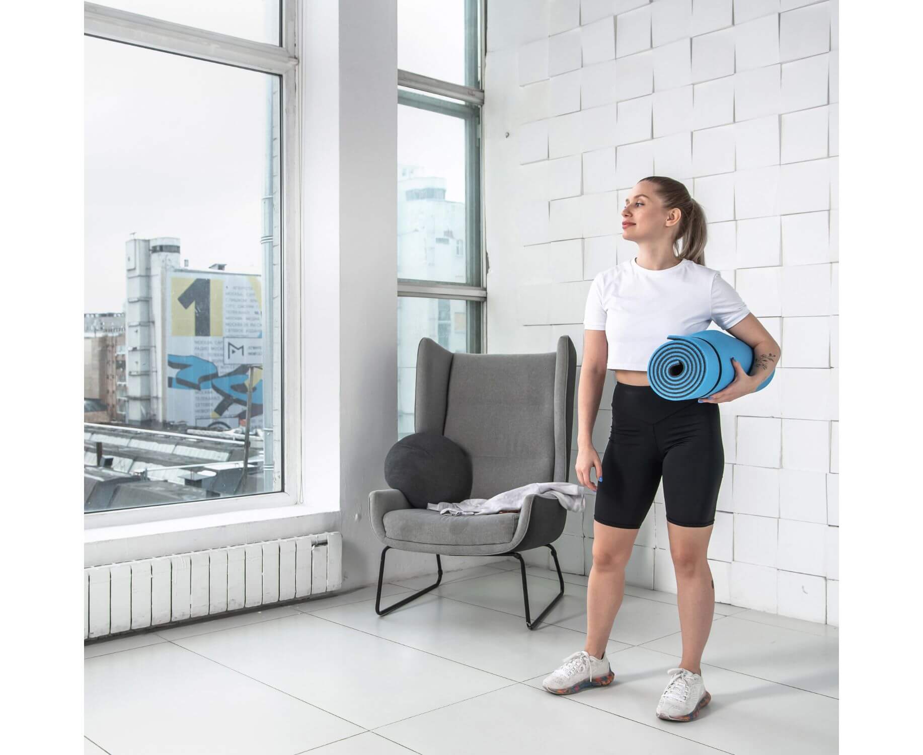 - Коврик для фитнеса синего цвета размером 180 х 60 см.