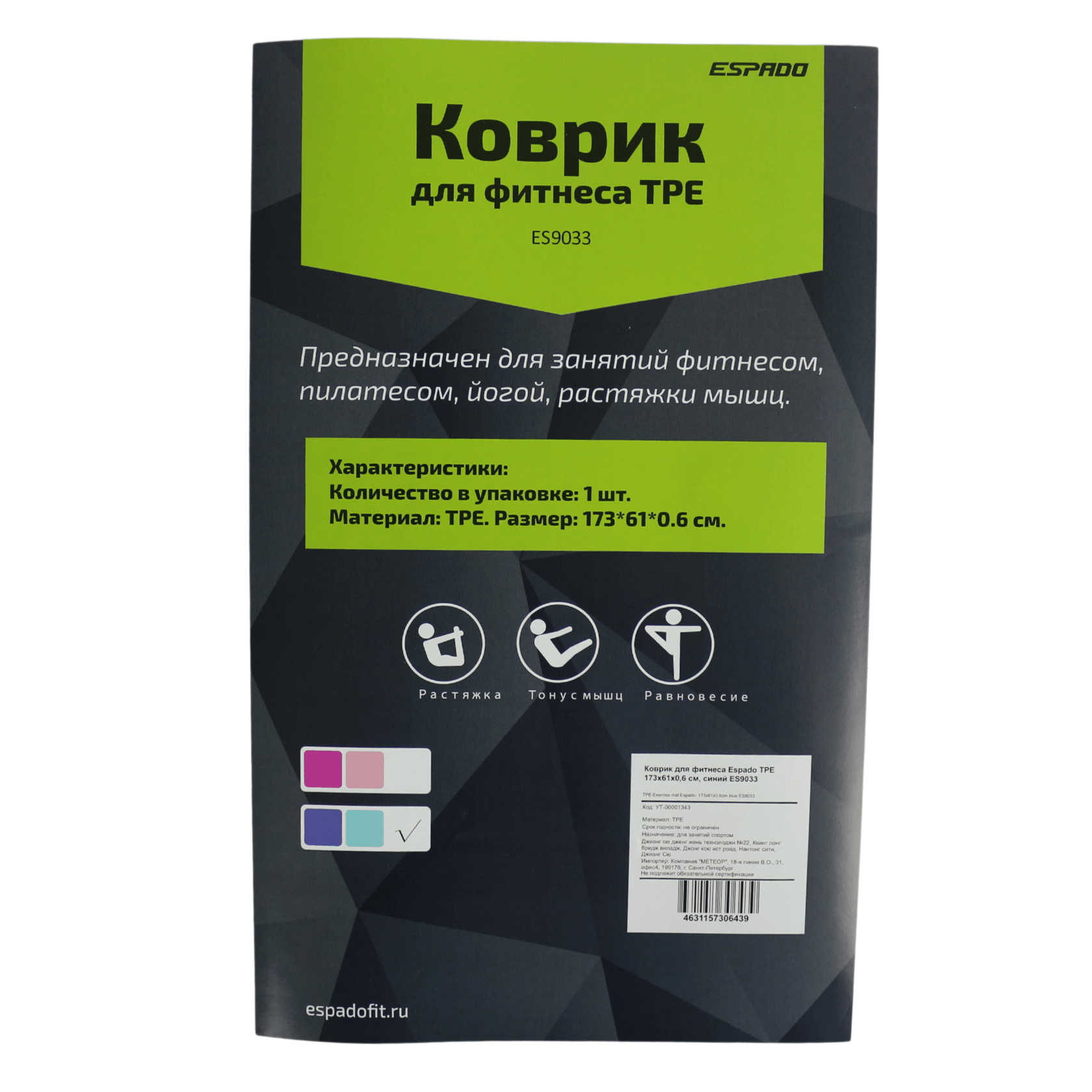 - Коврик для фитнеса Espado водонепроницаемый, его легко чистить.