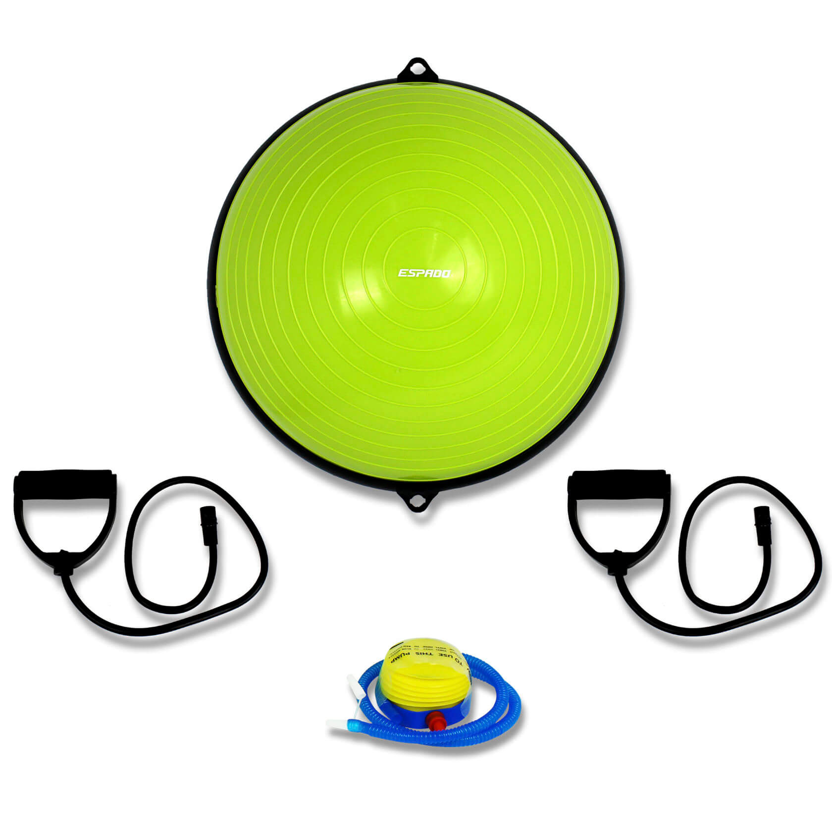 Полусфера Espado - балансировочная платформа для тренировок в зале и дома, оснащенная съемными эспандерами. Если человек хочет похудеть, развивать баланс, вестибулярный аппарат, сердечно-сосудистую систему, укреплять связочный аппарат ног, полусфера от Espado – необходимый для использования аксессуар. Его используют как новички, чтобы похудеть, так и профессиональные спортсмены, восстанавливающиеся после сложных операций на коленных суставах.