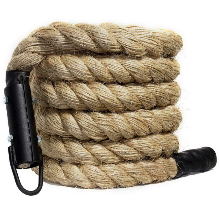 - Канат для лазанья снабжен стальным зажимом с прочным кольцом для карабина, благодаря которому можно установить снаряд в любом месте, где есть подходящее по высоте крепление.