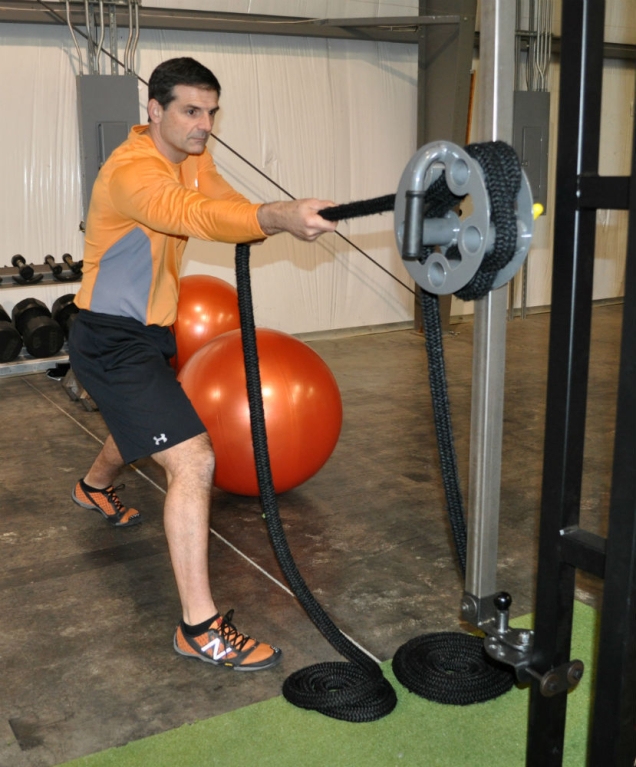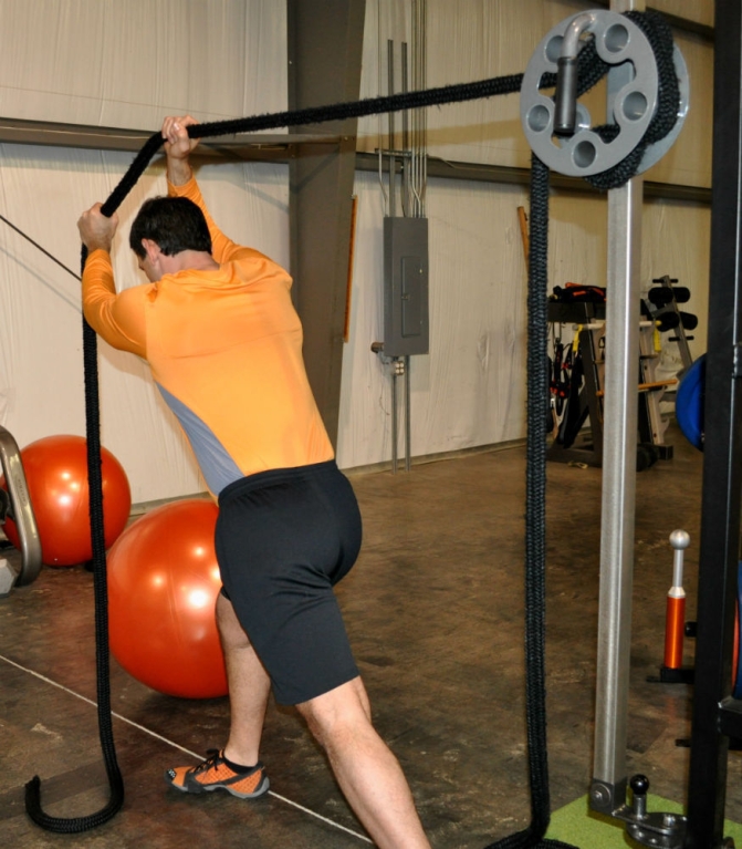 - Конструкция тренажера предусматривает использование каната. Продевая его через одну из труб барабана, спортсмен имеет возможность самостоятельно регулировать сопротивление протяжки и нагрузку. Используя «Барабан», можно выполнять основные движения - тянуть, вращать, изменять угол приложения силы.