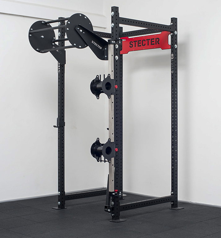 - Представленная модификация тренажера для канатов снабжена регулировочной стойкой, которая позволяет спортсмену быстро переключаться с одного вида работы на другой. Регулировочная стойка предоставляет возможность изменять высоту крепления каната, а также разворачивать его на 180 градусов в горизонтальной плоскости. Вы можете закрепить стойку непосредственно на несущую стену вашего зала или прикрепить на опорную стойку функциональной рамы.