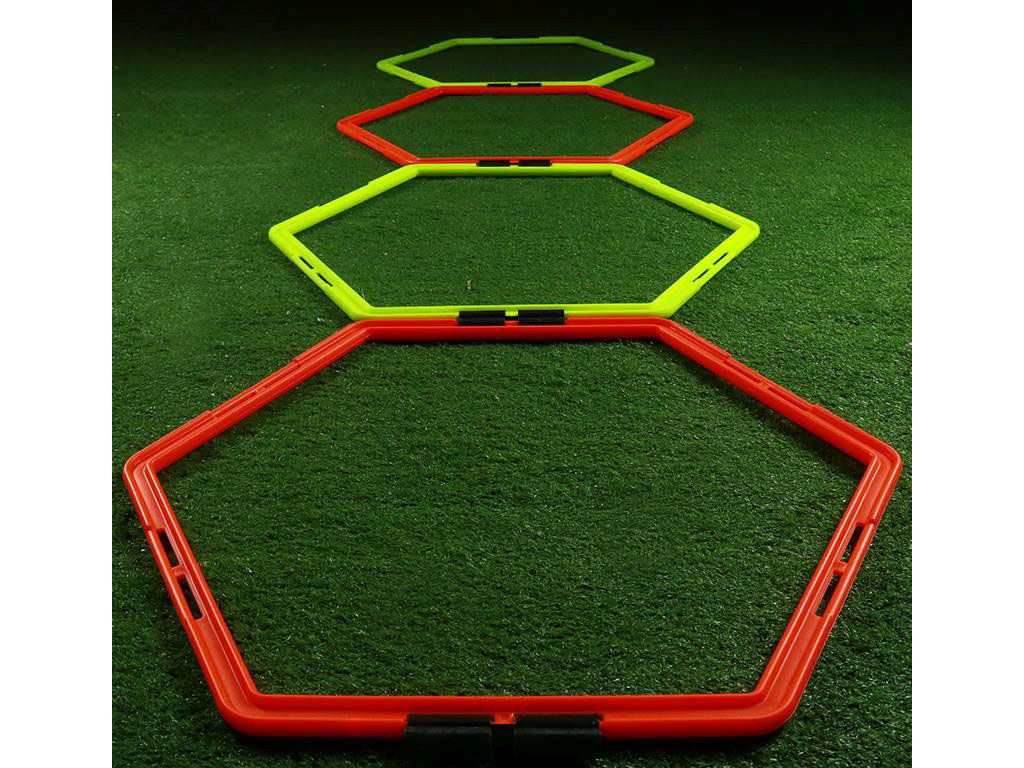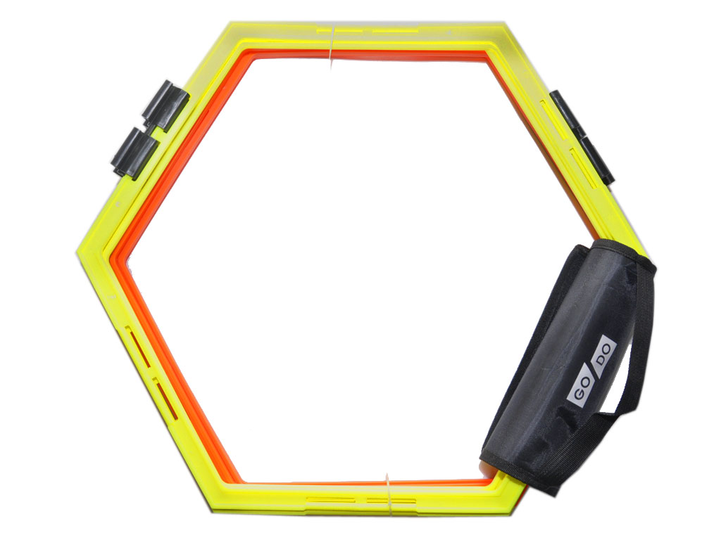 Координационная дорожка «Шестиугольник» предназначена для усовершенствования координационных способностей спортсменов. В наборе 6 шестиугольников с боковыми креплениями: 3 красного цвета, 3 жёлтого цвета и ручка чехол для переноски.