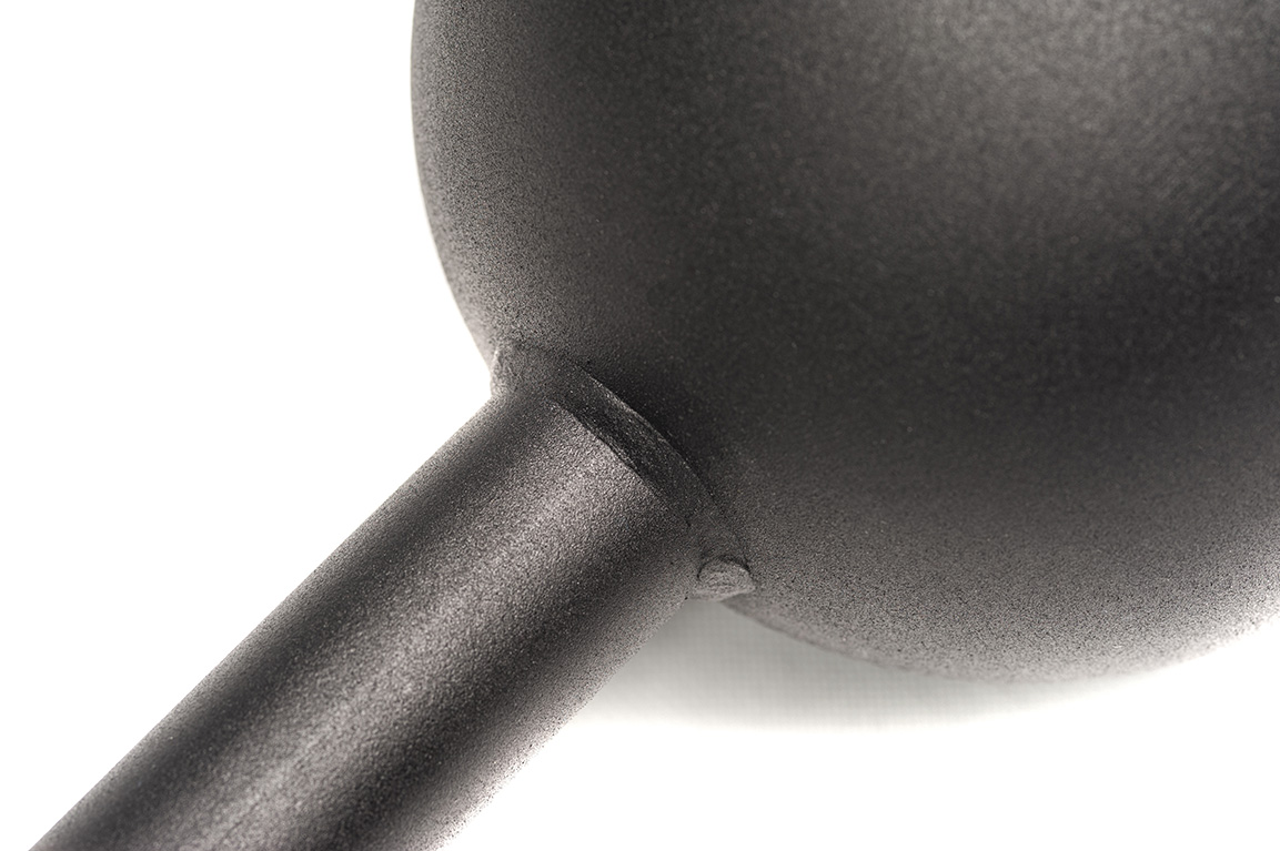 - Вся поверхность снаряда окрашена матовой порошковой краской черного цвета. Она имеет приятную на ощупь текстуру и совсем не скользит.