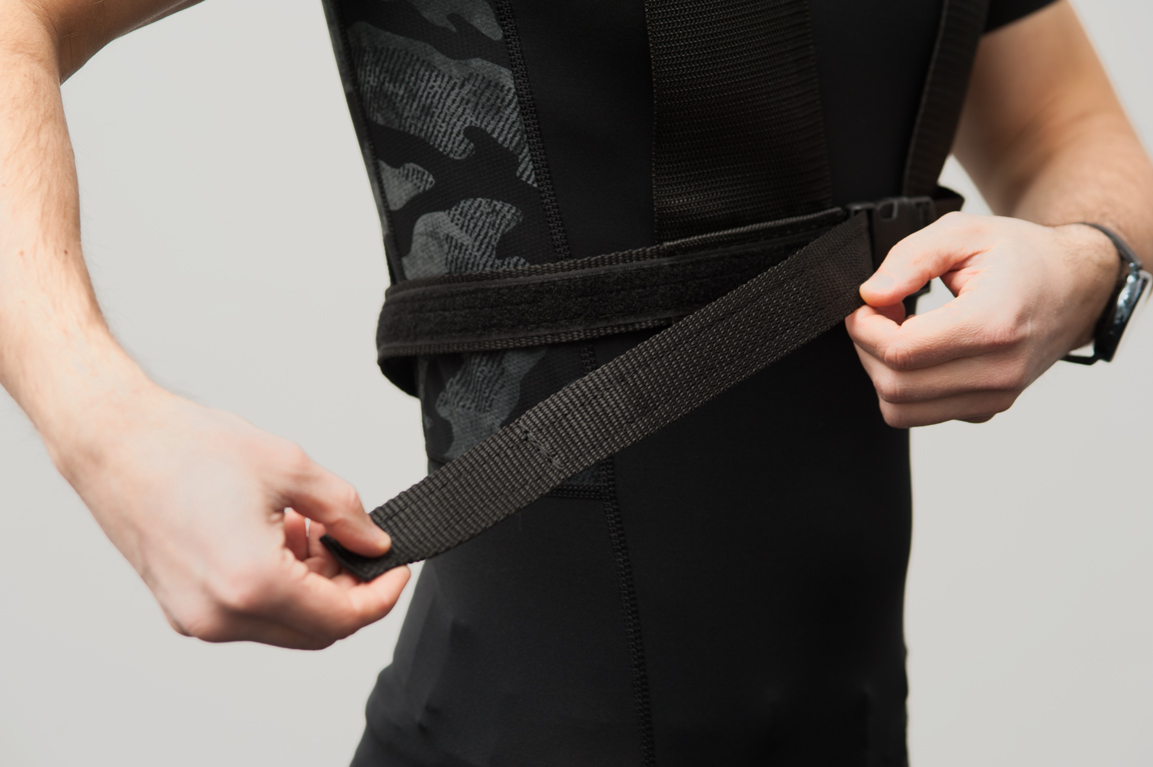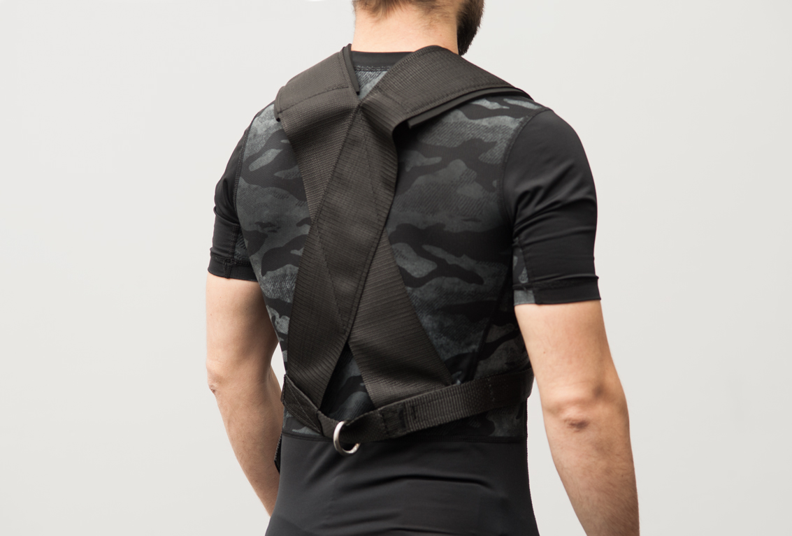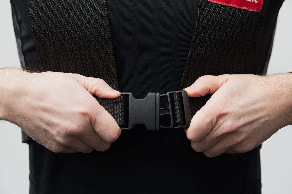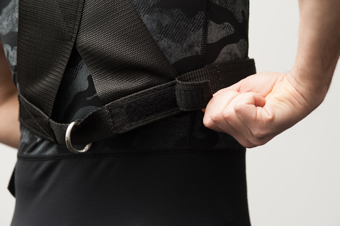Для удобства спереди добавлен замок, который удерживает жилет на атлете между подходами и во время отдыха. Вы легко можете отрегулировать стропу на замке под свой размер. Чтобы стропа не мешала тренировке, она снабжена липучкой. Расстегнуть замок возможно одним движением и стропы для саней легко снимаются.