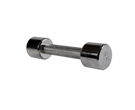Гантель выполнена с нанесением комплексного гальванического покрытия из никеля и хрома.