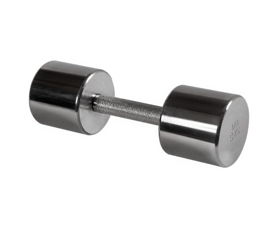 Гантель выполнена с нанесением комплексного гальванического покрытия из никеля и хрома.