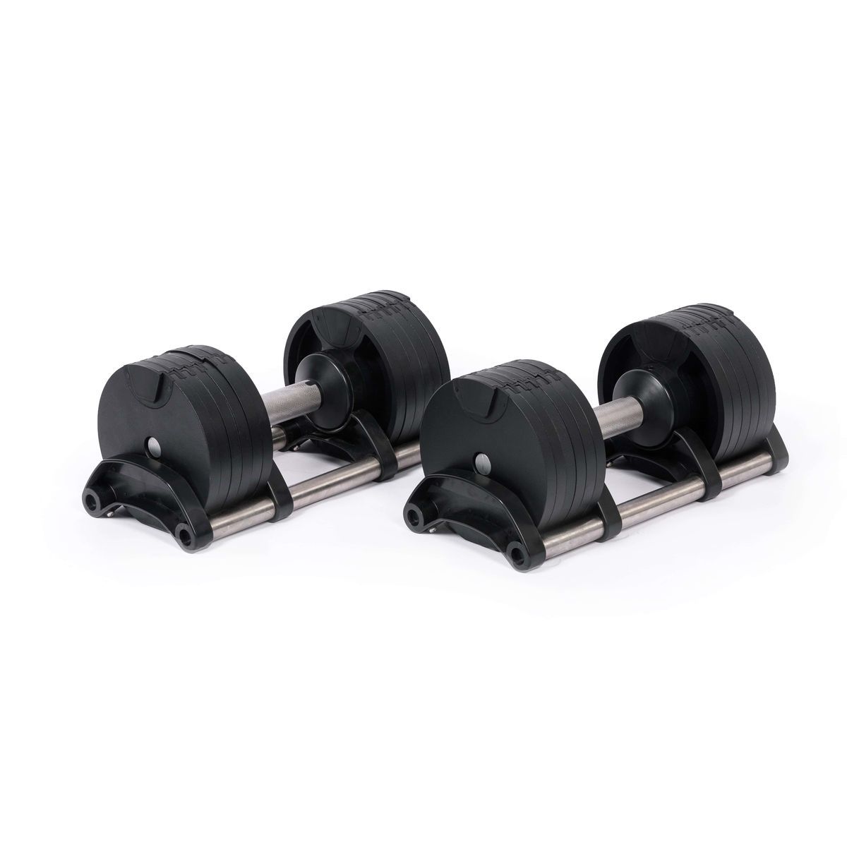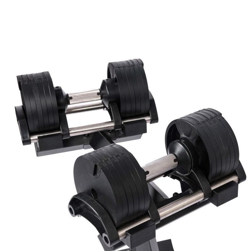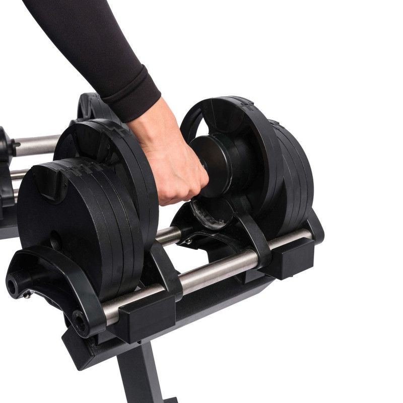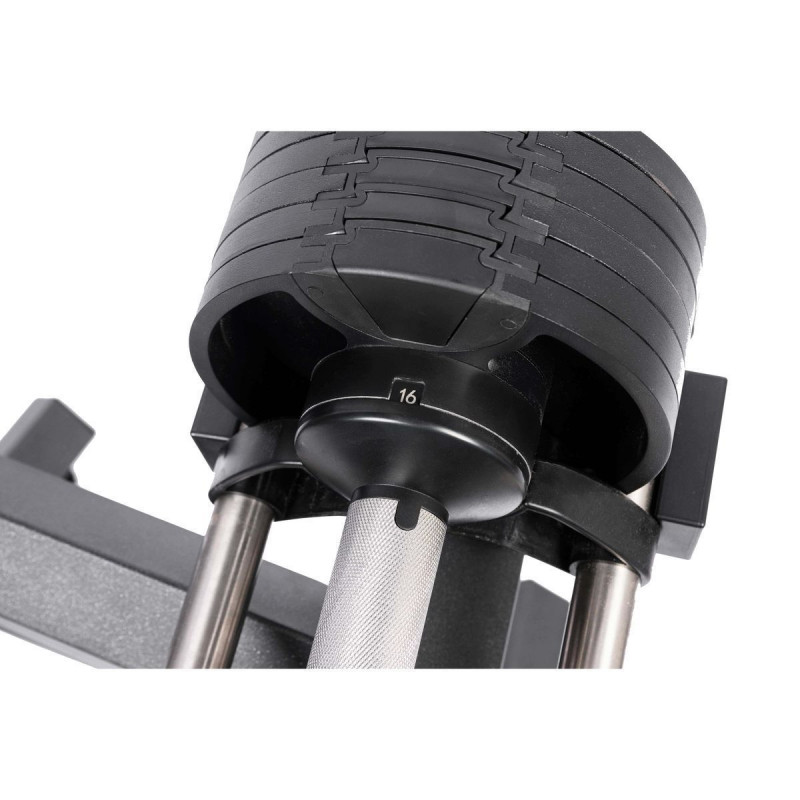 - Гантель с платформой в комплекте. Уникальная технология позволяет быстро и легко регулировать вес простым поворотом руки.