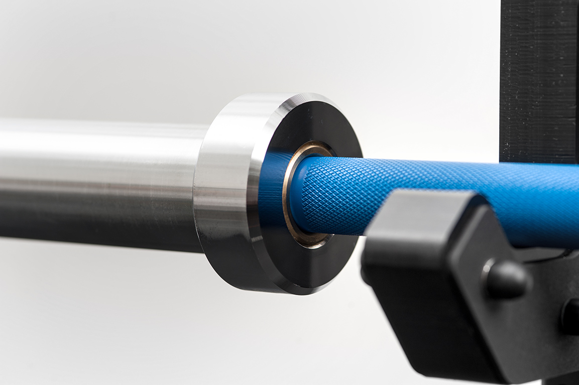 - Рукава грифа свободно вращаются благодаря установленным игольчатым подшипникам. Это очень важно, потому что вращение убирает скручивающую нагрузку на кисти рук во время работы с штангой.