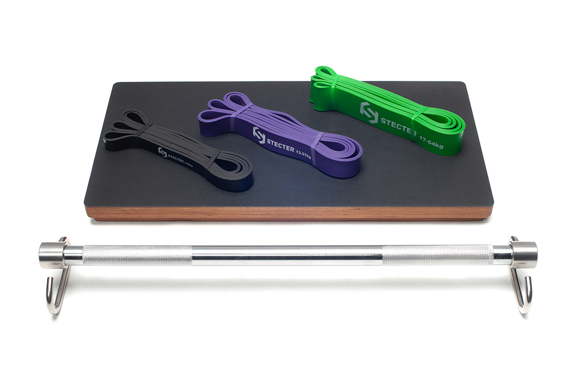 - Способен обеспечить нагрузку, как при полноценной силовой тренировке. Регулируйте нагрузку благодаря использованию резиновых петель различной ширины и их совместных комбинаций.
