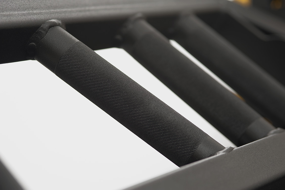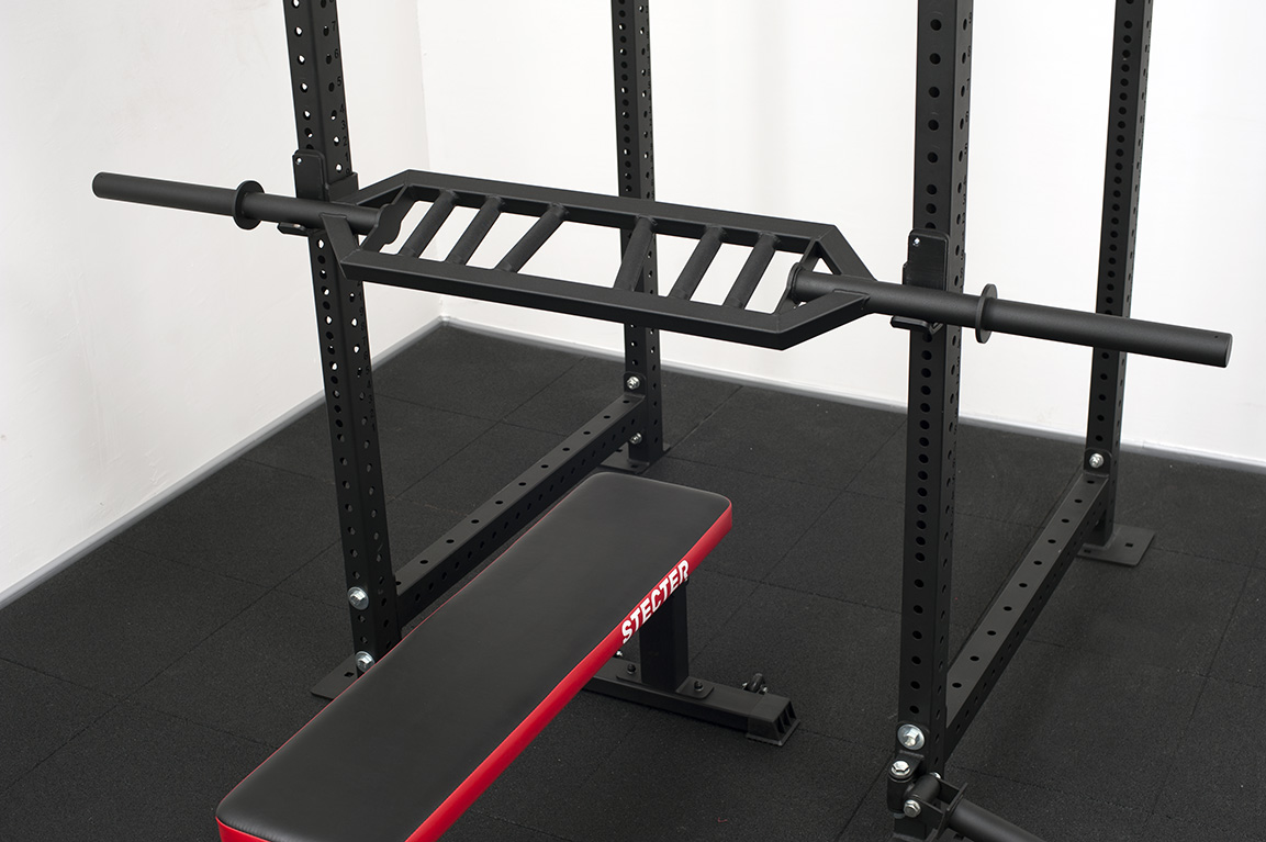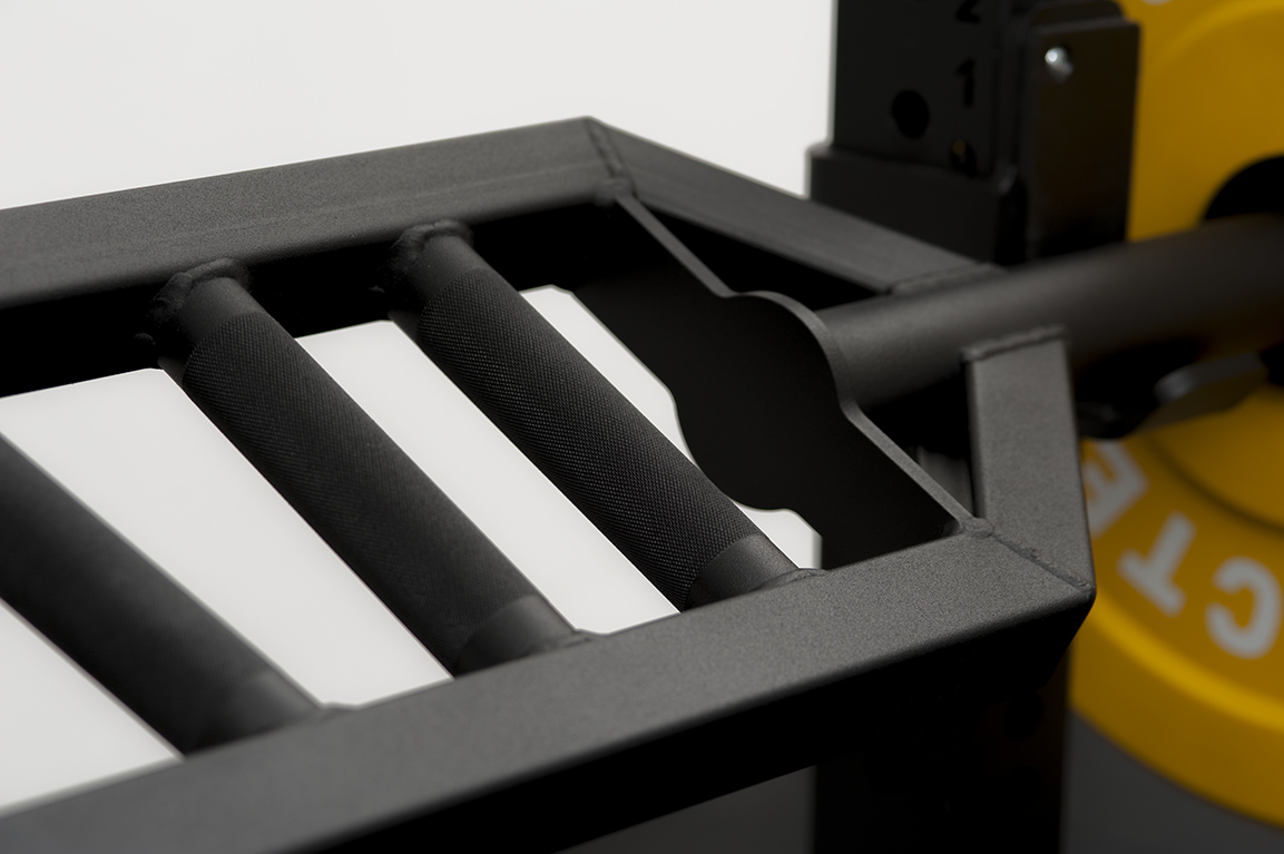 - Размер рамы грифа отлично подходит под стандартные силовые рамы и стойки для функционального тренинга.