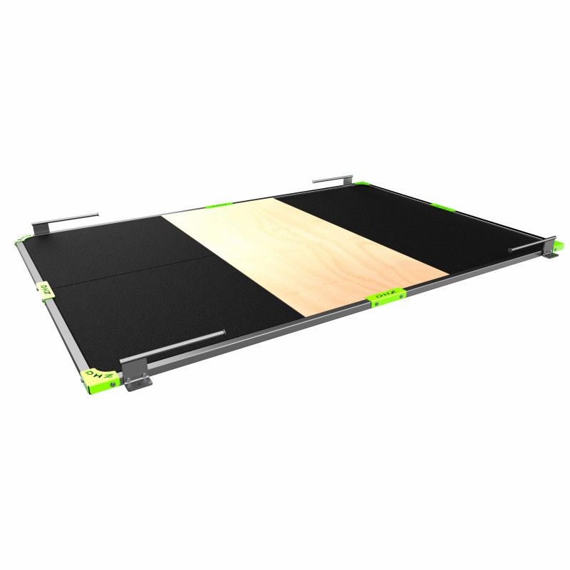- Центральная часть заполнена фанерным настилом, что обеспечивает надежную устойчивость тяжелоатлета, т.к. отсутствуют на настиле стыки.