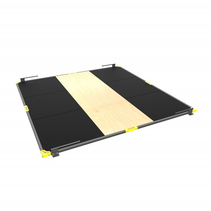 - Центральная часть заполнена фанерным настилом, что обеспечивает надежную устойчивость тяжелоатлета, т.к. отсутствуют на настиле стыки.