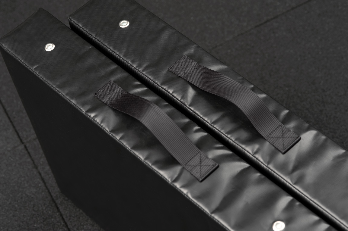 - Усиленная ручка вшита в каждый мат и облегчает его переноску.