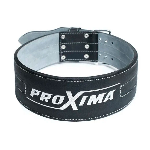 Сверхпрочный кожаный пояс PROXIMA создандля максимальной поддержки спины и корпуса тяжелоатлетам при поднятии экстремальных весов.