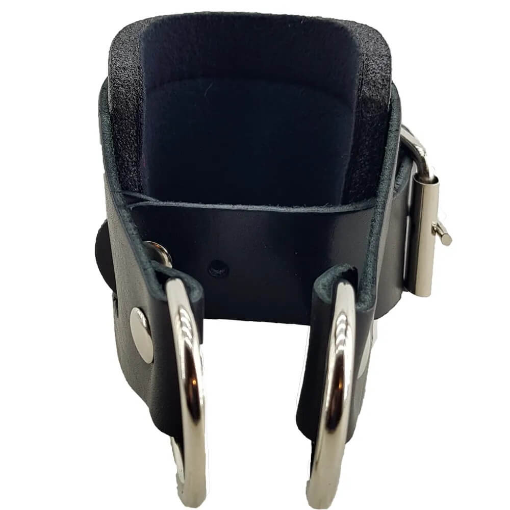 Манжета на ремне из натуральной кожи с вспененной накладкой и мягкой флисовой подкладкой. Отличительная особенность данной модели - два надёжно закрепленных полукольца, которые гарантируют стойкость к повышенным нагрузкам и комфорт на тренировках.