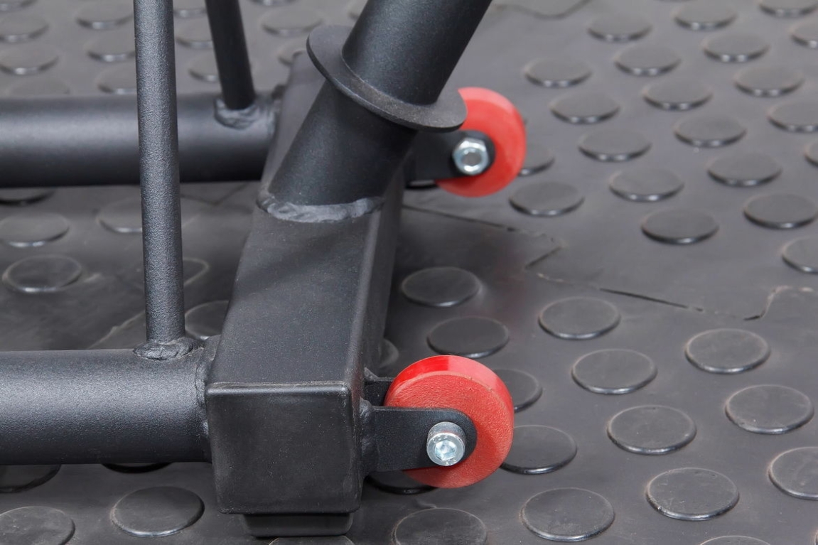 - Удобная ручка и колеса делают очень удобным процесс их перемещения по спортивному залу.