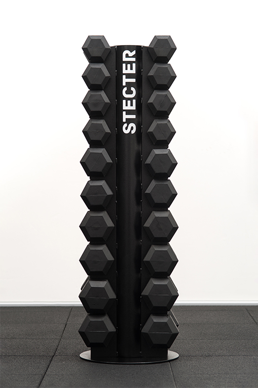 - Стойка для хранения гантелей STECTER DUMBBELL колонного типа позволяет разместить гантельный ряд на 10 пар.
