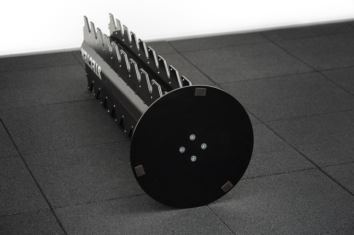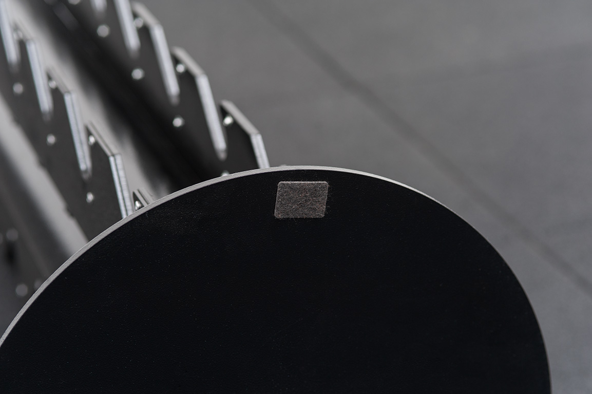 - В основании подставки для гантелей установлен съемный опорный диск диаметром 427 мм. На него прикрепляется защита пола.