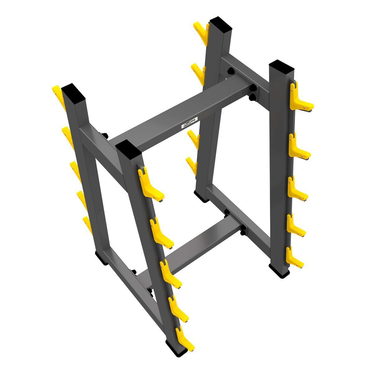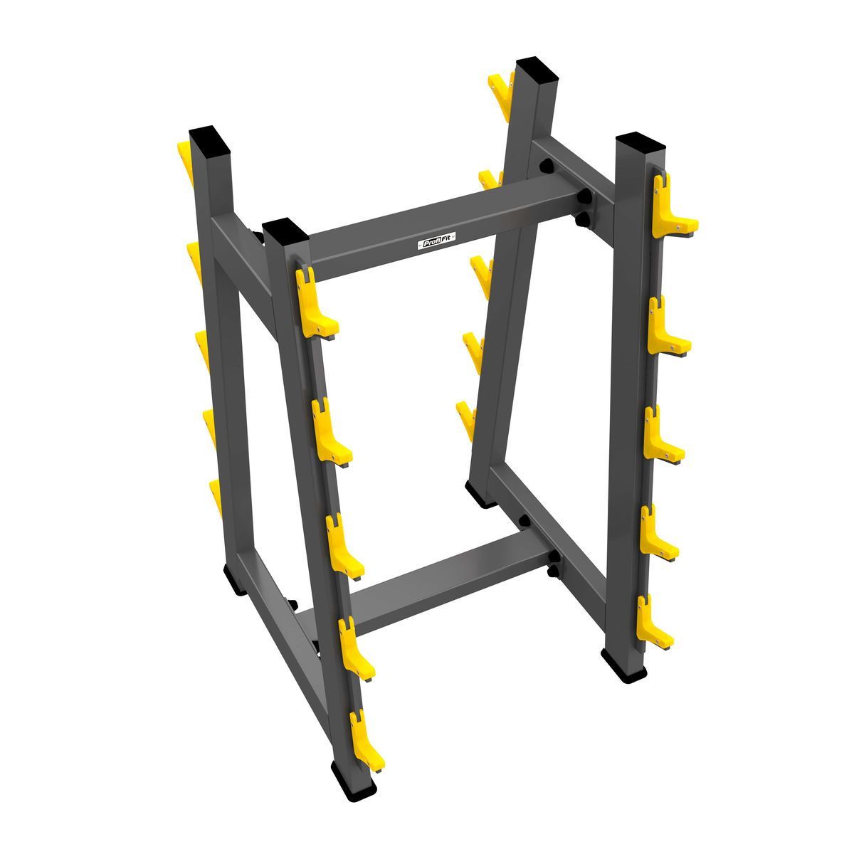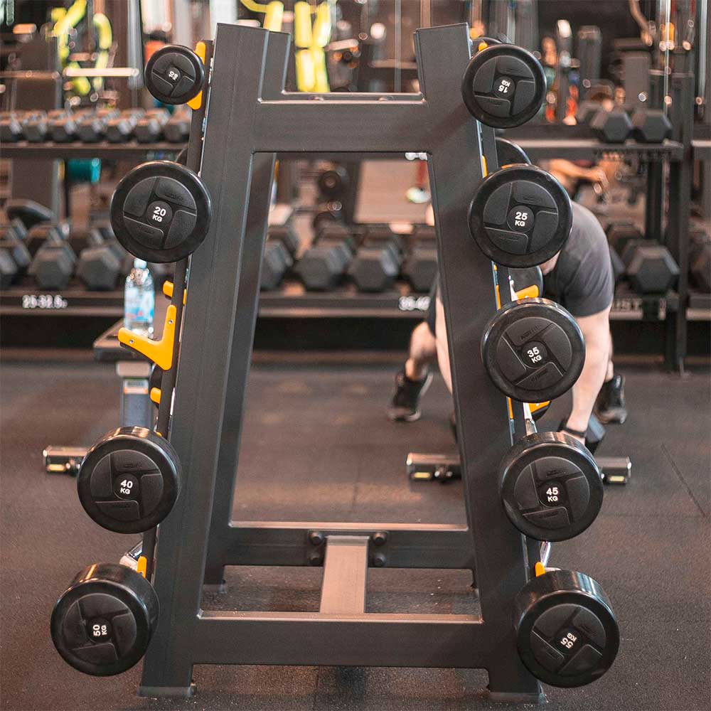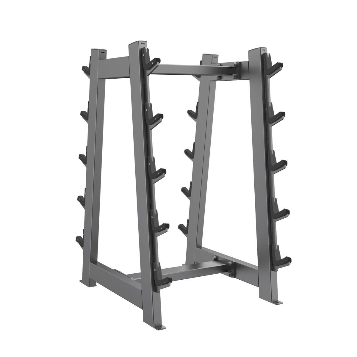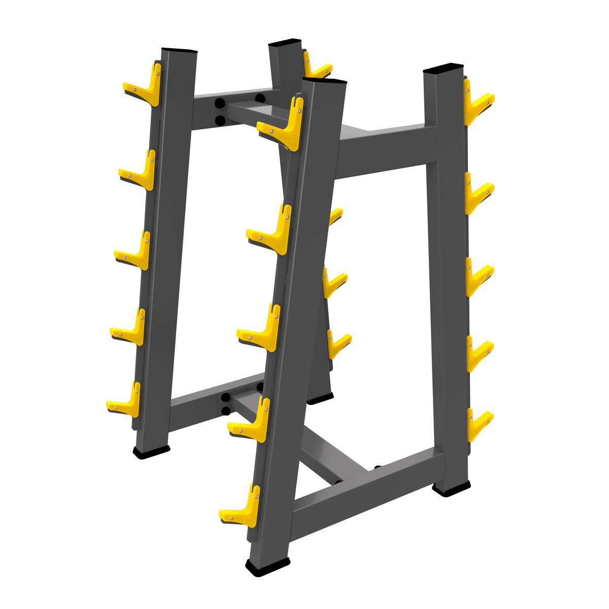- Позволяет поддерживать порядок в зоне силовых тренировок, экономит место, обеспечивает безопасность хранения 10 фиксированных штанг.