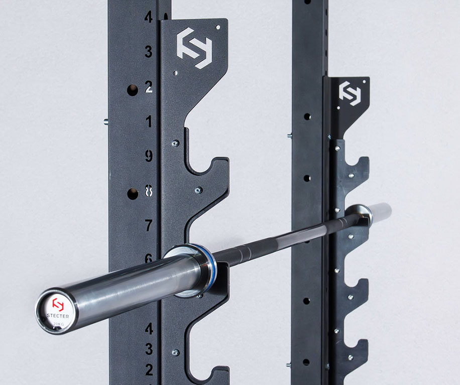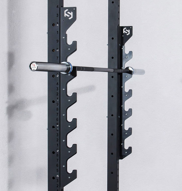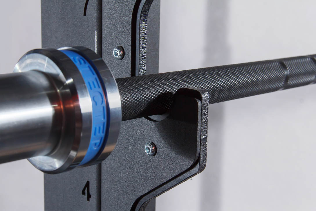 - На кронштейне могут одновременно храниться до 6 олимпийских грифов.