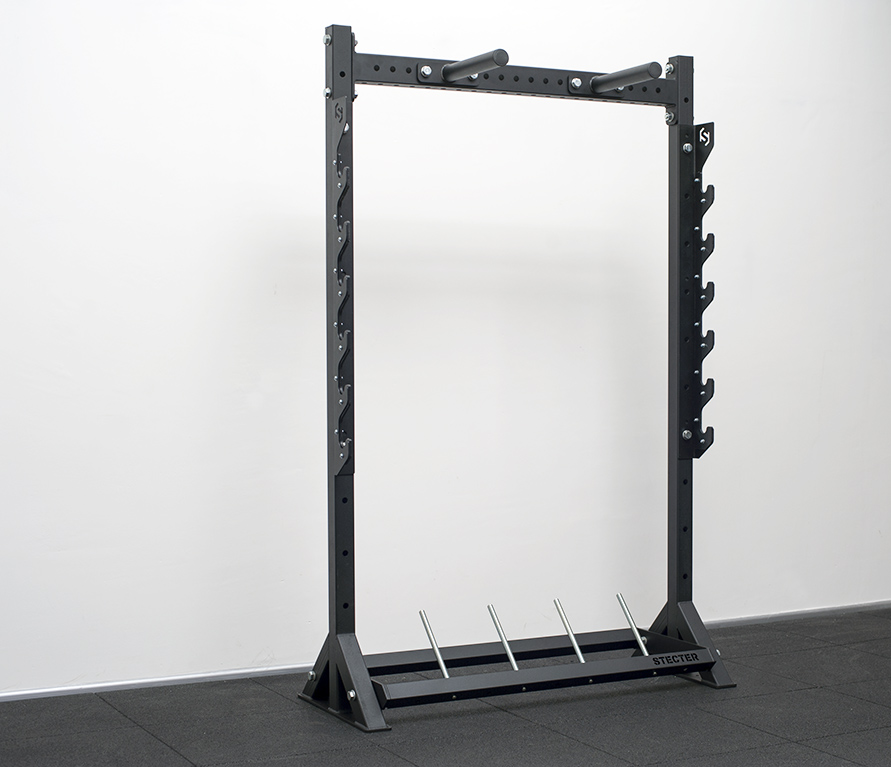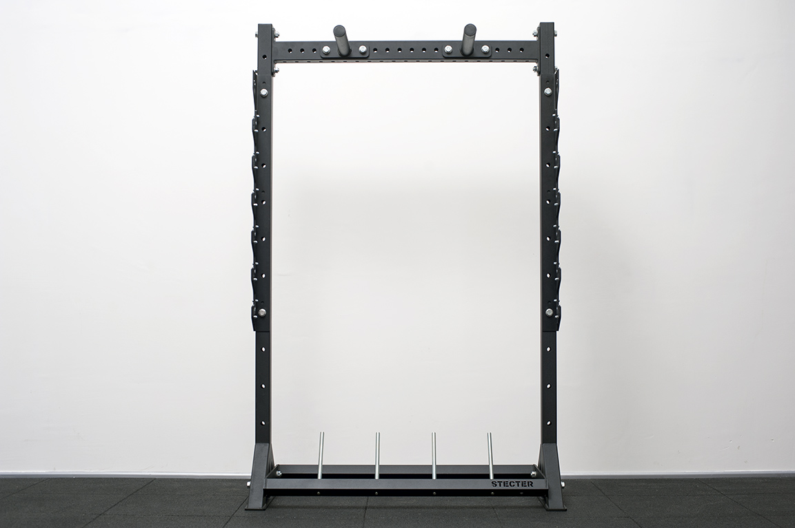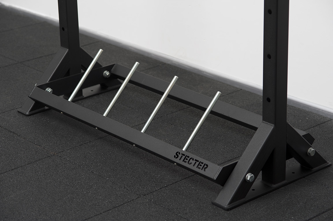 Проблемы хранения и систематизации инвентаря знакомы всем спортивным клубам – от маленьких районных «качалок» до крупных сетевых брендов. Решением вопроса для вашего спортзала может стать приобретение стеллажа для инвентаря – универсального аксессуара, позволяющего компактно разместить диски для штанги, гири и гантели. В опорных стойках имеется перфорация, которая позволяет менять высоту полок в зависимости от габаритов инвентаря.