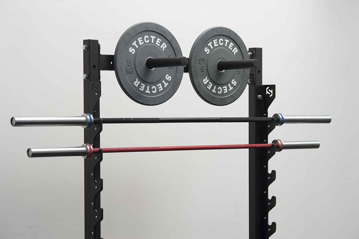 - Удобство хранения дисков. В последнее время появилось много разновидностей дисков для штанги: каучуковые блины, соревновательные диски, бамперные (HI-TEMP) блины. Все они имеют различную толщину и не совсем удобно их хранить в отсеках с фиксированной шириной.