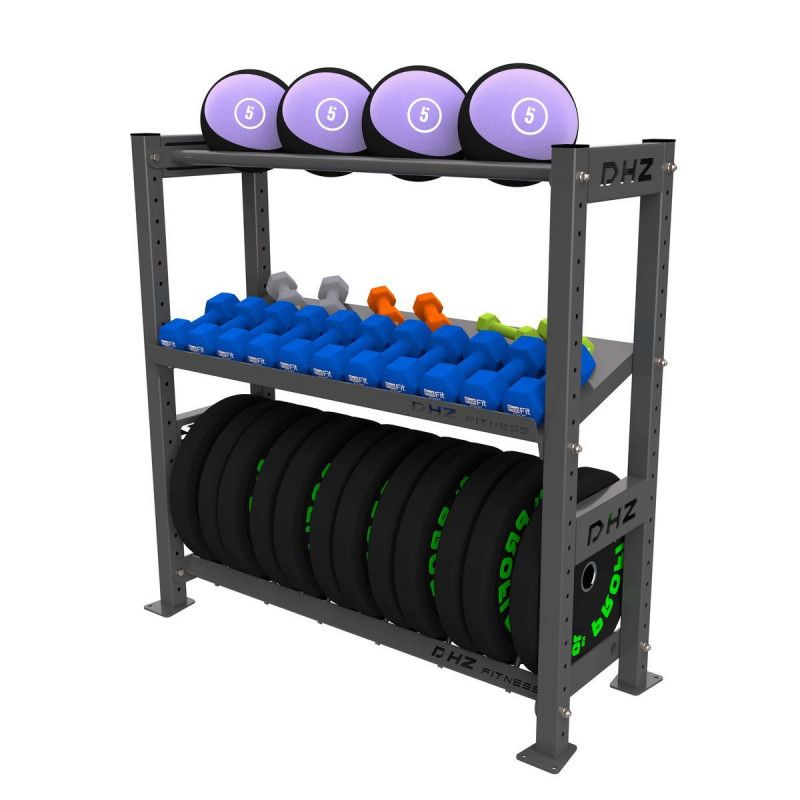 Модульные стеллажи – универсальное и простое решение по организации эффективного хранения оборудования в зале. Они отлично вписываются в интерьер любого кроссфит-зала.
